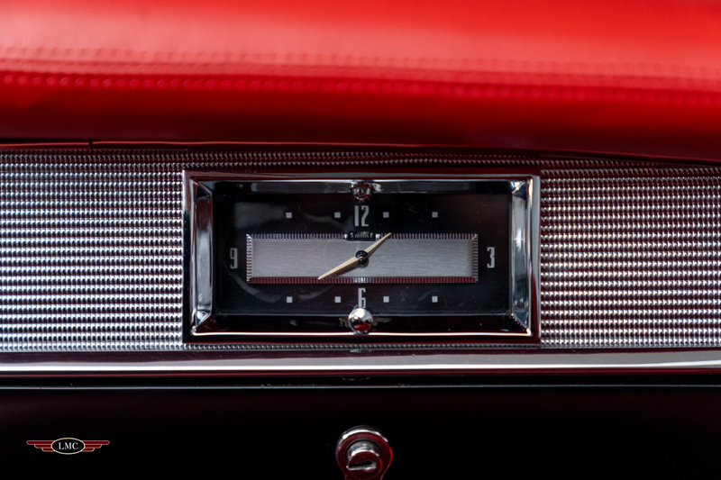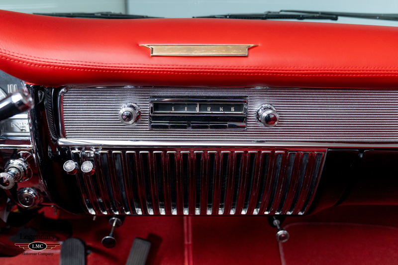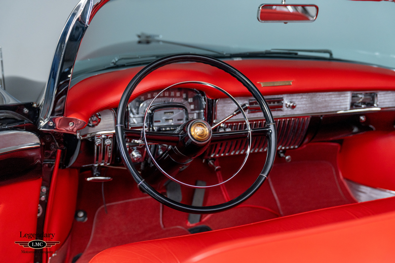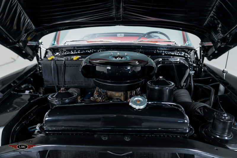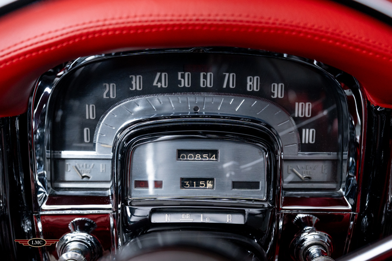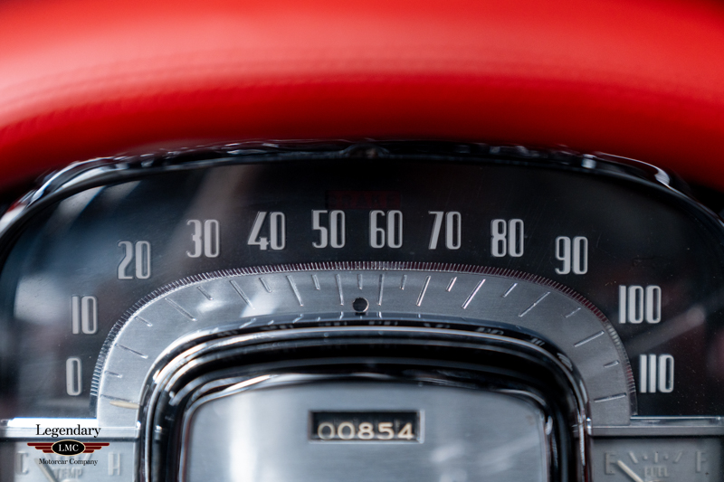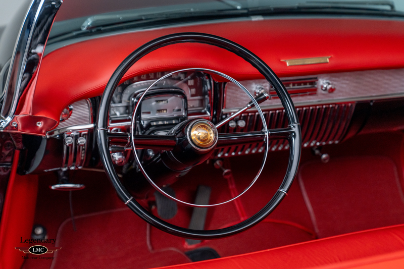 Inside, the beautifully restored red leather cabin showcases the high-end craftsmanship that made the 1953 Eldorado special, with supple upholstery, intricate chrome detailing, and Cadillac’s premium instrumentation. The low beltline and panoramic windshield give the interior an airy, open feel that perfectly complements the car’s dramatic styling.