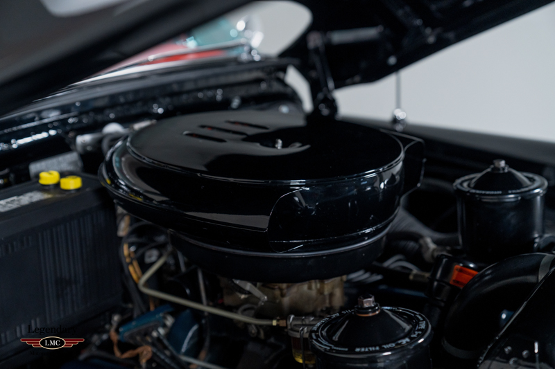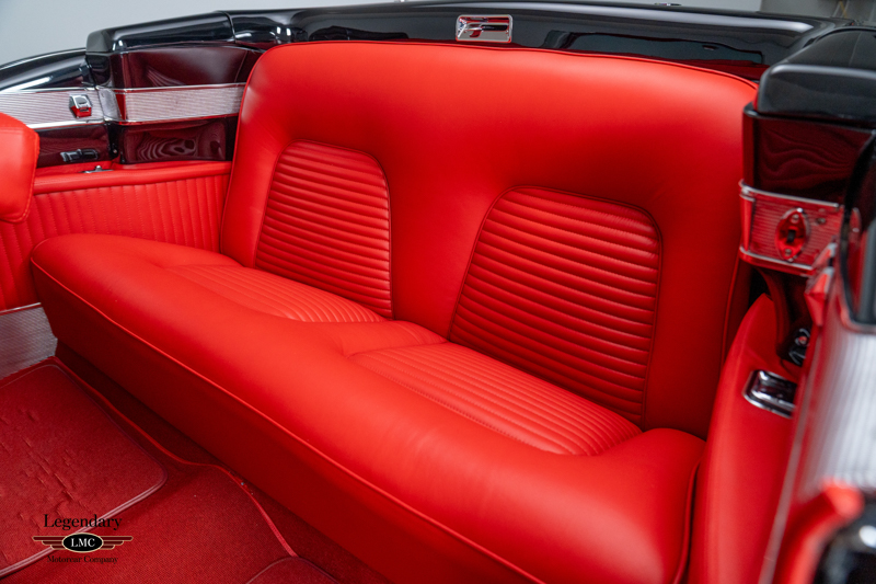 Built on Cadillac’s premium Series 62 convertible platform but extensively reworked and trimmed by Fleetwood, the Eldorado features unique quarter panels, a distinctive wraparound “Panoramic” windshield, flush rear fender skirts, and its signature cut-down beltline that dramatically lowers the car’s profile. The power-operated white convertible top complements the deep black finish beautifully, creating a striking and sophisticated silhouette.