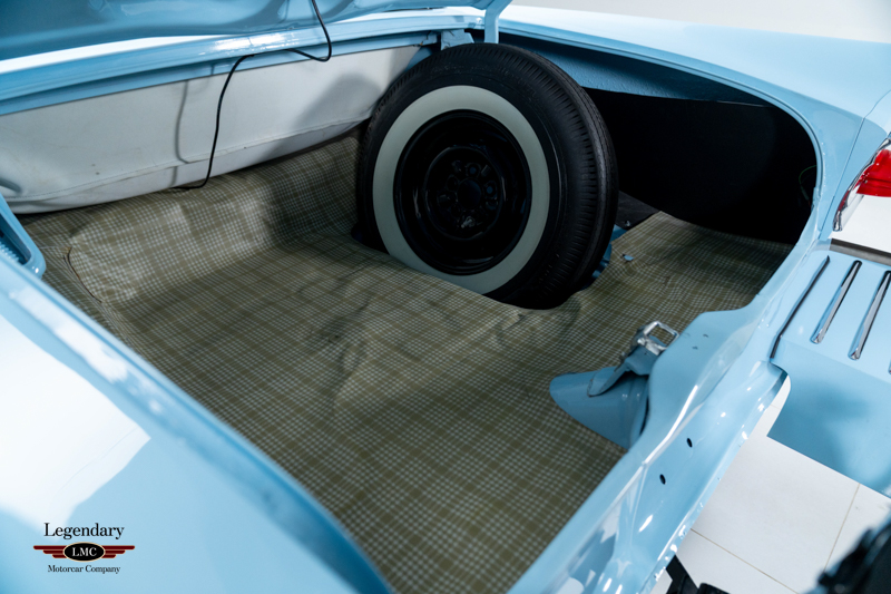 This stunning 1958 Ford Fairlane 500 Sunliner benefits from a previous frame-off nut-and-bolt rotisserie restoration performed by renowned Fairlane and Skyliner specialist Jerry Miller of Jerry’s Classic Cars in Springdale, Arkansas. Known in the Ford world for producing some of the finest concours-quality 1957–59 full-size restorations, Miller’s craftsmanship is on full display here. Built at the San Jose assembly plant and finished in beautiful Azure Blue with a factory two-tone Blue interior and a Dark Blue Haartz power soft top, this Sunliner exemplifies late-1950s Ford styling at its most elegant and highly optioned form.
