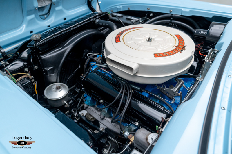 Visually, the car presents with exceptional presence thanks to its brilliant chrome, wide whitewall tires, and Kelsey Hayes wire wheels, capturing the glamour and optimism of 1958 American automotive design—a year when Ford incorporated more dramatic styling cues inspired by the Thunderbird, including the fashionable quad headlights.