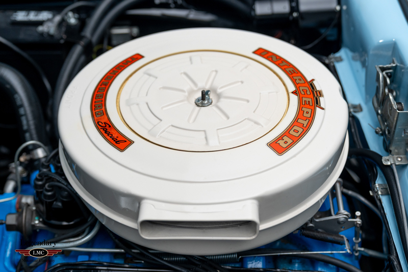 Under the hood, this Fairlane features the desirable and rare high-horsepower H-code 352/300 HP Interceptor V-8, paired with an automatic transmission and dual exhaust—an impressive drivetrain combination introduced for 1958. The car is equally well equipped with numerous luxury and convenience features, including power steering, power brakes, power windows, power front seat, and a power-operated top. Additional factory and period accessories such as dual spotlights with mirrors, a Town and Country radio, padded dash, stainless stone guards, fender skirts, and a Continental kit elevate this Sunliner to a truly premium specification.