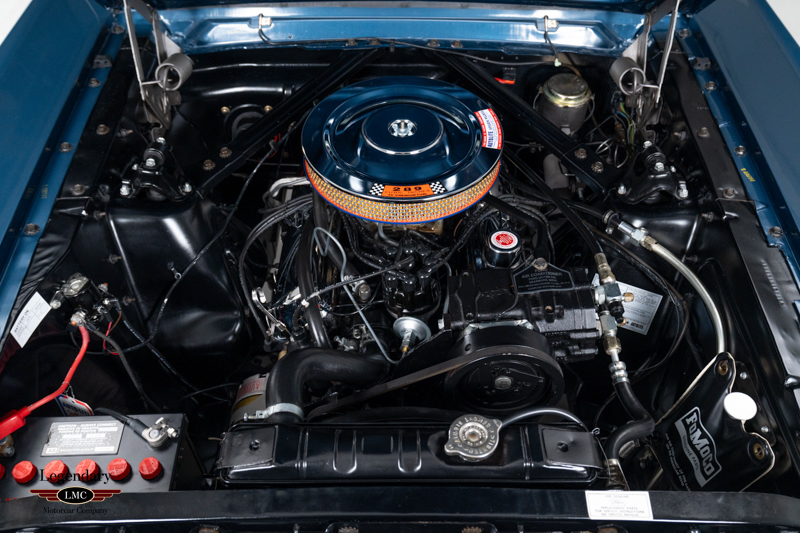 The exterior is beautifully set off by Styled Steel wheels wrapped in period-correct dual redline tires, giving the car an authentic and purposeful stance. Inside, the cabin features the highly attractive Blue and White Pony interior, a hallmark of mid-1960s Mustang design, offering both comfort and unmistakable style. Adding to the driving experience are the desirable Rally Pac gauges, providing both a tachometer and clock in a classic, driver-focused layout.