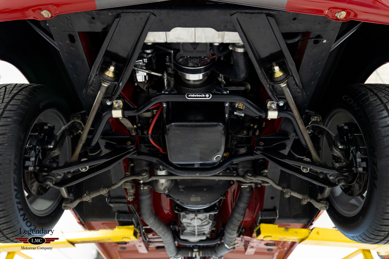Built to deliver far more than straight-line performance, this Fastback is equipped with a complete Ridetech Street Grip suspension system, one of the best handling upgrades available for early Mustangs. The system includes front dual-rate coil springs, front sway bar, Delrin control arm bushings, ball joint wedge plates, HQ Series adjustable monotube shocks, composite leaf springs, plus Delrin leaf spring bushings and shackles. Wilwood power-assisted four-piston disc brakes at all four corners provide confident stopping power, while EPAS electric power steering greatly improves steering feel and ease of use.