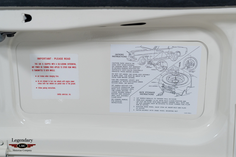 Finished and presented to exacting concours standards, the car rides on Shelby Cragar wheels fitted with proper Goodyear Blue Dot tires, perfectly capturing its purposeful, competition-bred stance. The undercarriage has been restored and detailed to the highest level, showcasing correct finishes and factory-correct presentation throughout.