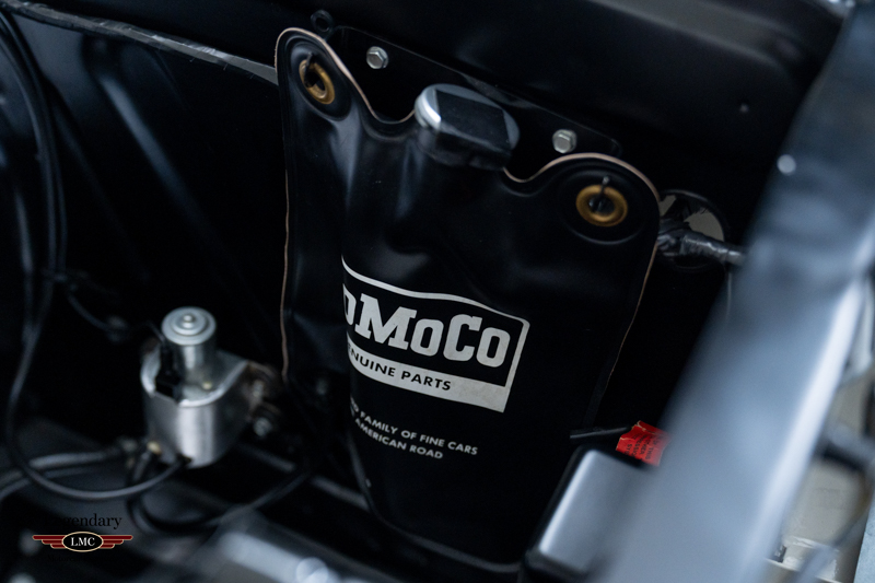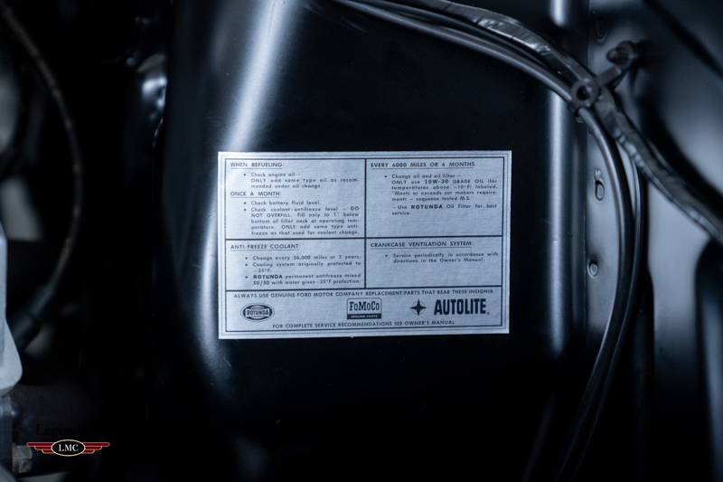 Power is delivered by its original matching numbers Hi-Po 289ci/306hp V-8 engine, retaining significant original components including the early S1MS intake manifold, 715 CFM Holley LeMans carburetor, original Carter “Button Top” fuel pump and FOMOCO dual-point distributor. The drivetrain is further anchored by its original aluminum-case T-10 4-speed transmission, backed up by the race-bred factory 3.89 Detroit Locker Rear Differential, providing the raw, mechanical driving experience that defined the GT350 legend.