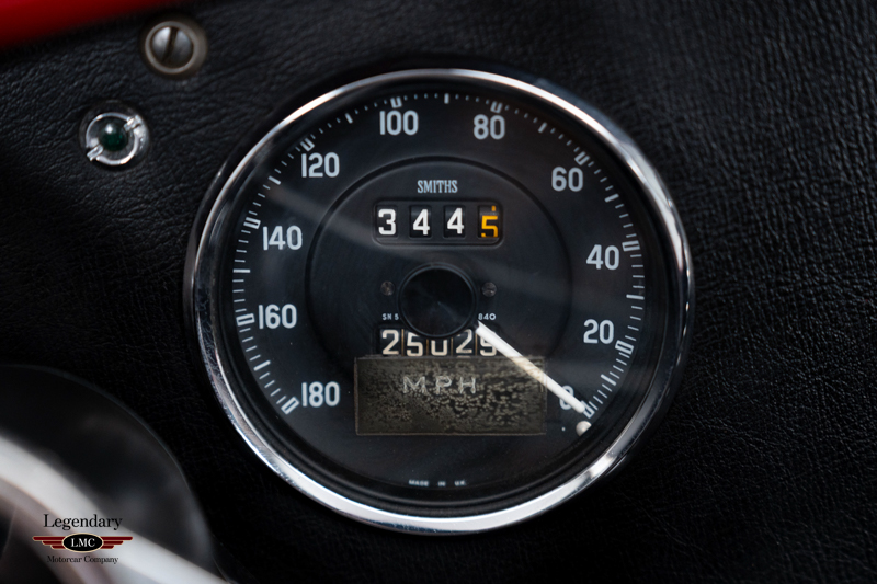 Of the 260 big block cars produced, it is one of very few to wear a factory hard top, and also noted are believed to be the original carpets, seat covers, door pockets, dash, and windshield, all presented with a marvelous patina that reflects its years with experienced and thoughtful owners. Furthermore, it is offered with its original jack, grease gun, spare wheel, soft top and side curtains, and it rides on an original set of Sunburst wheels.