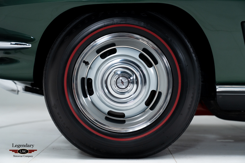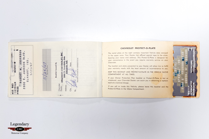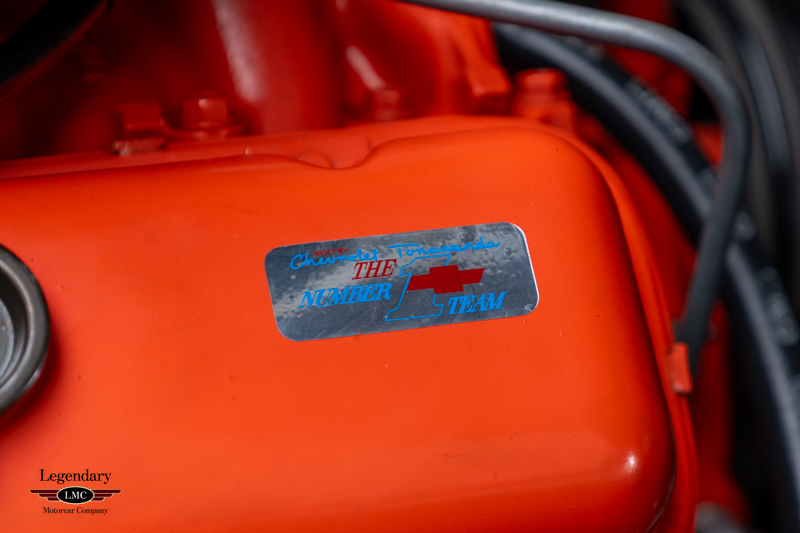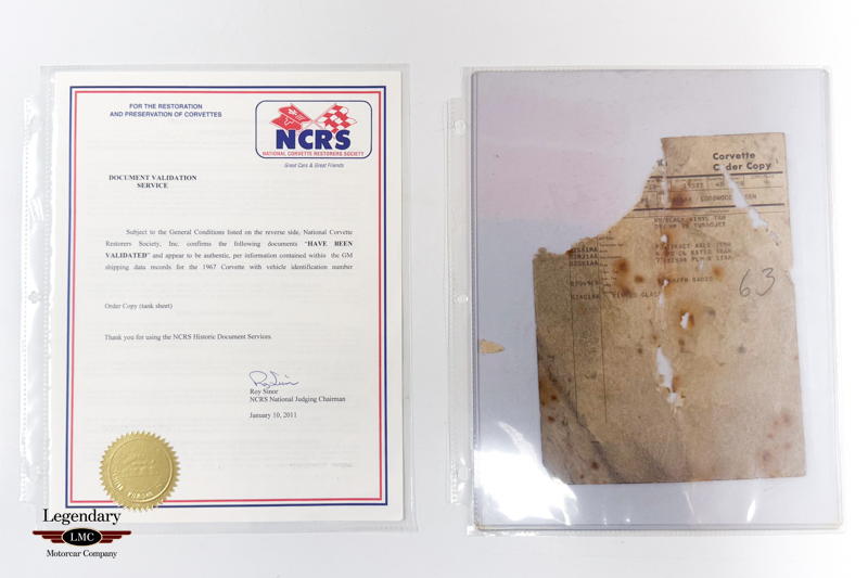 This Corvette benefits from a fully documented, frame-off restoration, with extraordinary attention paid to factory finishes, components, and assembly details. The car retains its NCRS-verified tank sticker and Protect-O-Plate, further validating its authenticity. Factory options include tinted glass, a push-button AM/FM radio, and a Positraction rear axle with 3.55 gearing (355R). Correct Goodyear 7.75-15 bias-ply red stripe tires mounted on Rally wheels complete the authentic presentation.