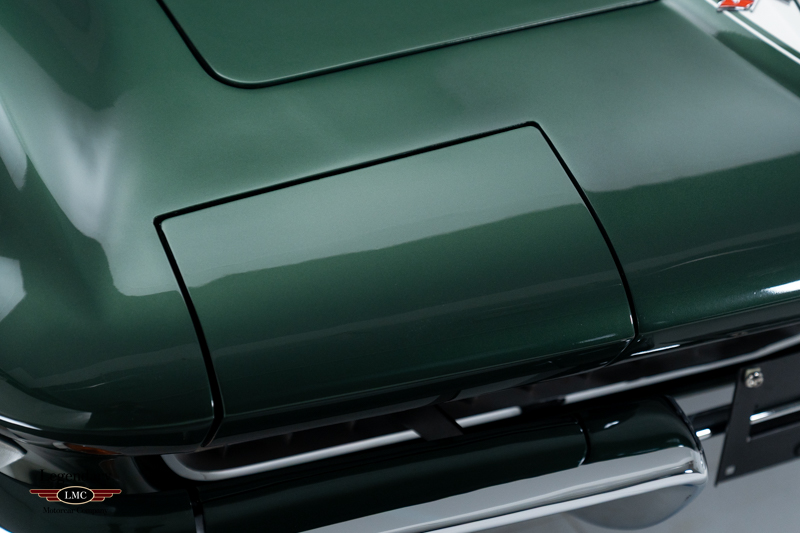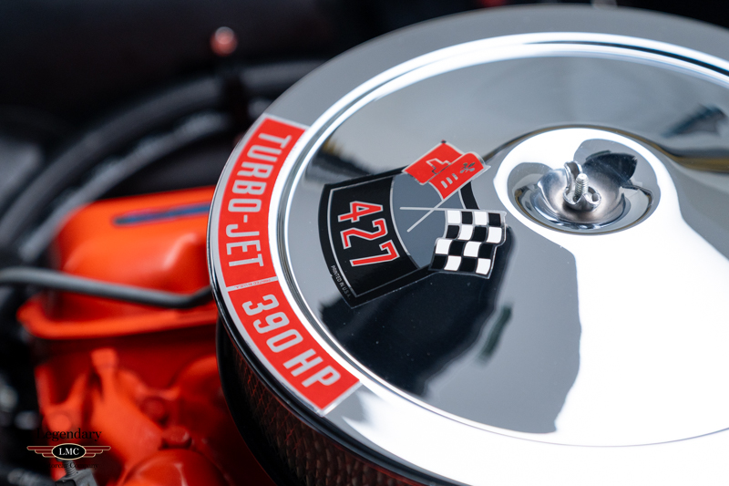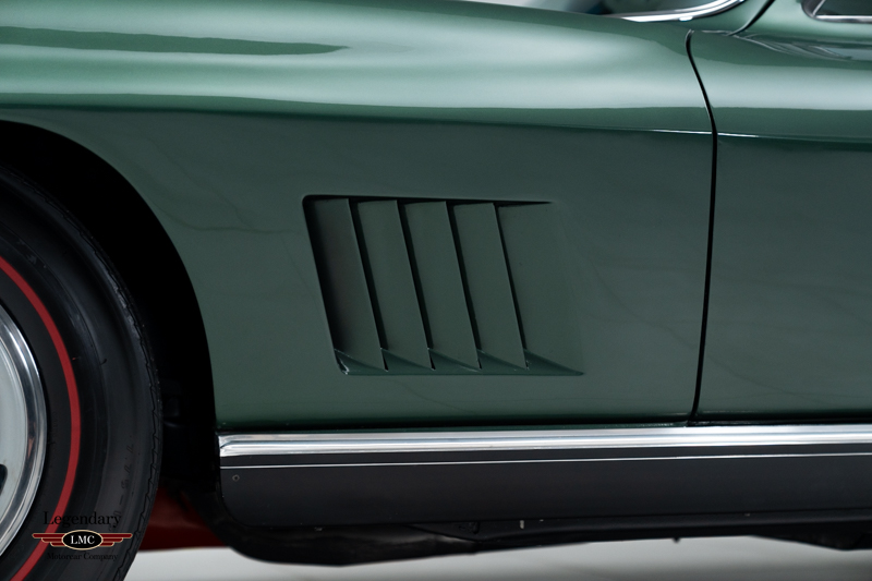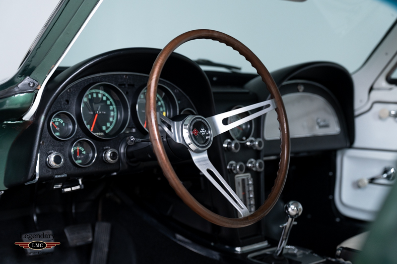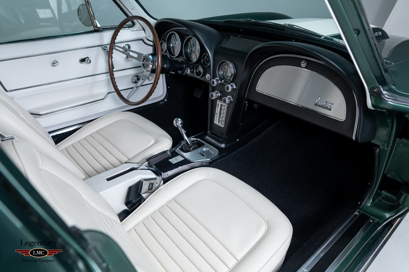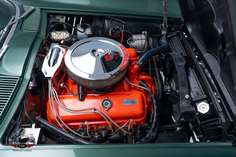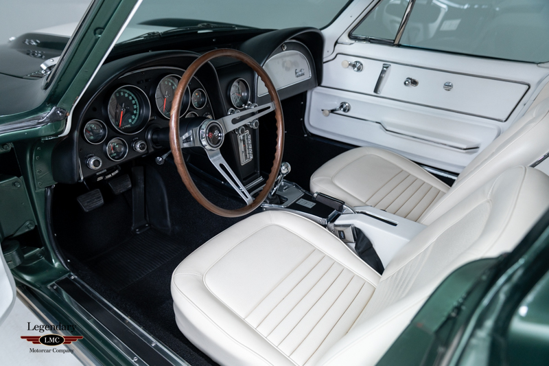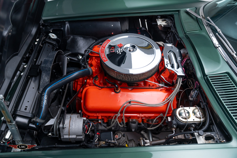 Under the legendary stinger hood lies the matching-numbers L36 427 cubic-inch big-block V8, factory rated at 390 horsepower, paired with its matching-numbers M21 close-ratio four-speed manual transmission. Finished in its factory-correct Goodwood Green (983AA) and accented by a striking white stinger hood, the exterior presents beautifully and authentically. The interior is trimmed in the correct White/Black vinyl (455AC), completing a highly desirable and period-correct color combination.