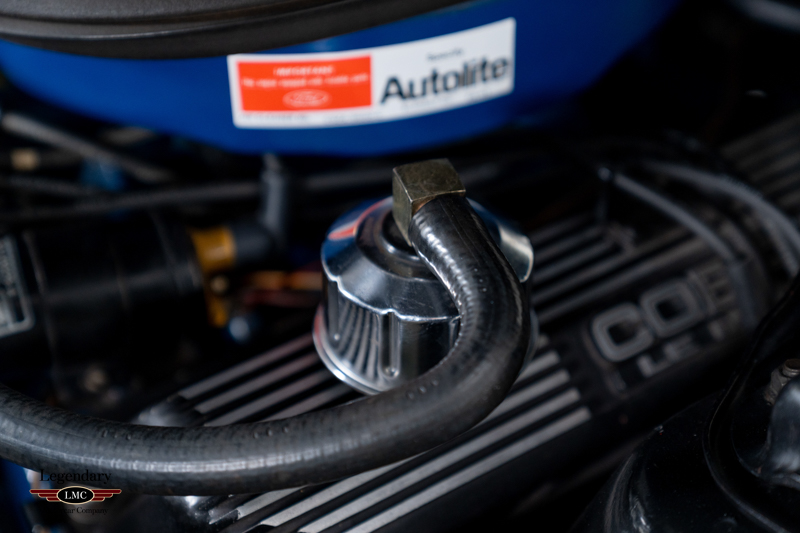 Under the hood sits the 428ci-4V Cobra Jet engine, paired with the four-speed manual transmission and a 3.50 Traction-Lok rear axle, delivering the torque-heavy performance that made the KR legendary. Additional features include power steering, power front disc brakes, Tilt-Away steering column, Sport Deck rear seat, and the Interior Decor Group. Classic 15-inch Shelby 10-spoke aluminum wheels complete the exterior, giving the car its unmistakable Shelby stance.