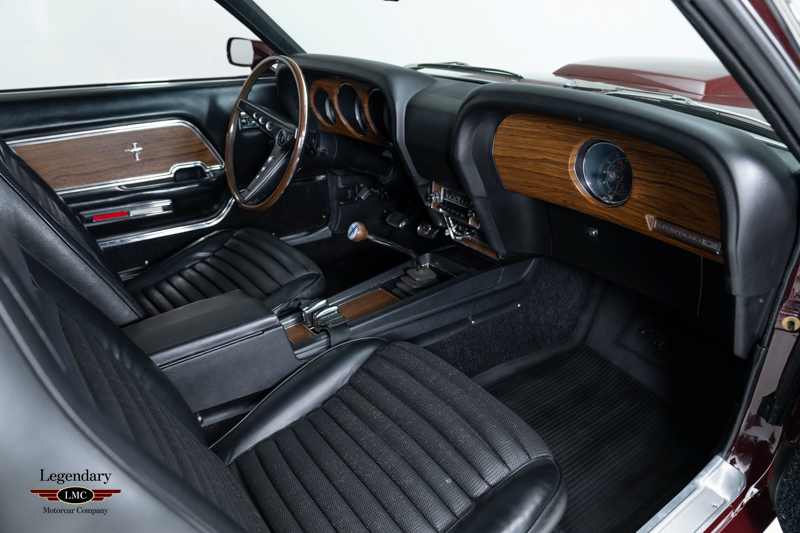 This particular example is an exceptionally desirable early-production car, equipped with the coveted factory “S” code Boss 429-4V NASCAR engine and retaining its numbers-matching engine. Early “S” code cars are especially prized among collectors for their raw, competition-oriented engineering and their direct connection to Ford’s NASCAR development program. The car is finished in ultra-rare Royal Maroon, a seldom-seen factory color that adds a level of exclusivity and presence rarely found among Boss 429s. The exterior is perfectly complemented by a Black Clarion Knit Vinyl interior featuring hi-back bucket seats, maintaining both the authentic look and feel of the era.