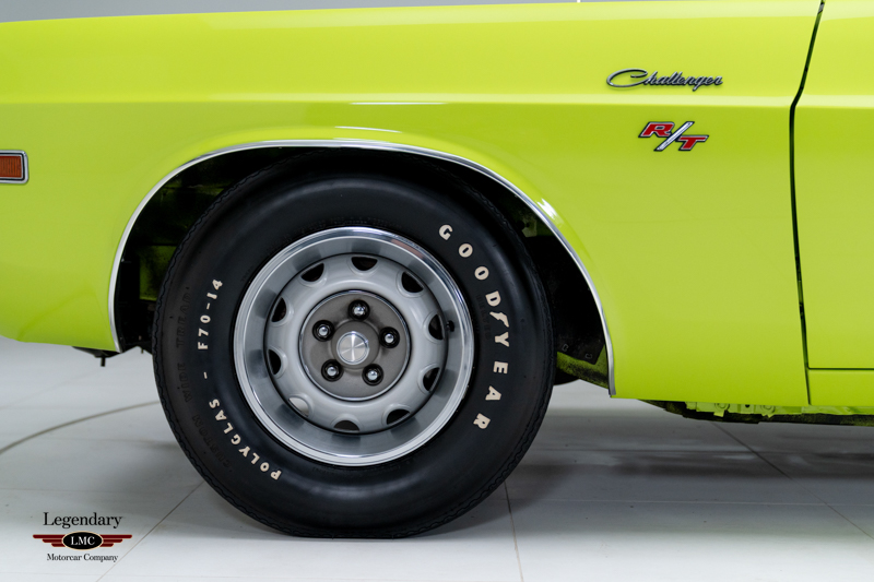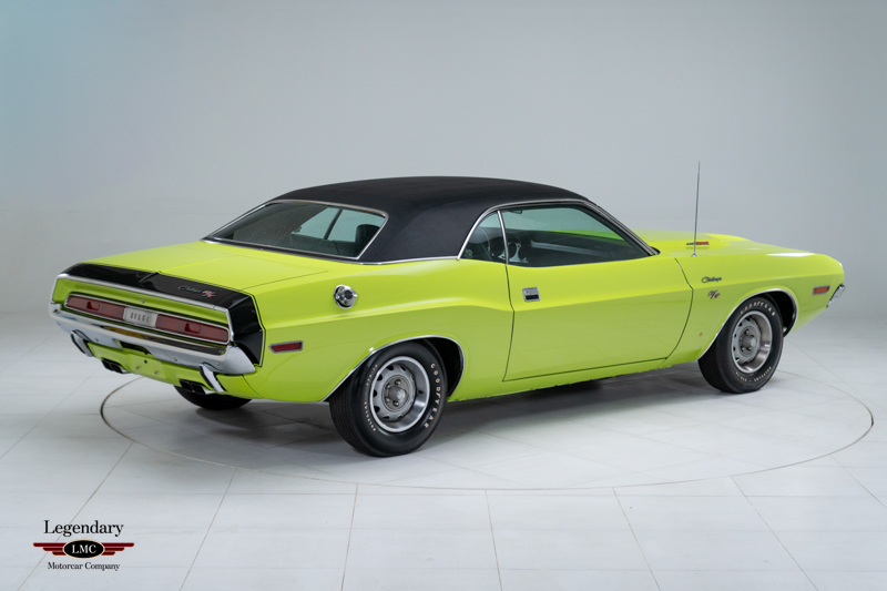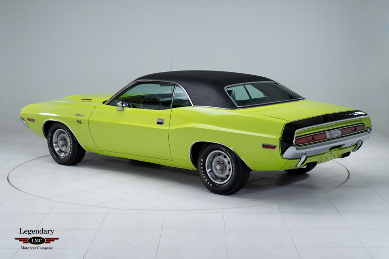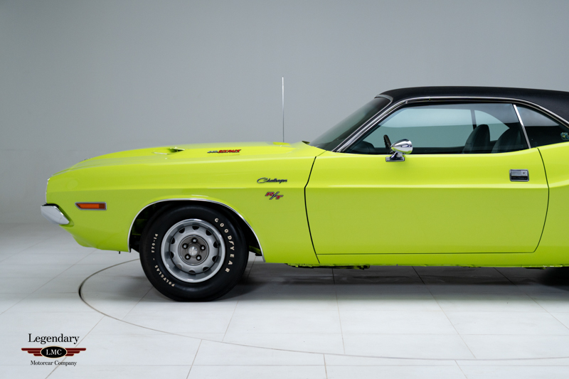 Delivered new through Glavic Dodge in Parma, Ohio, as the dealer's Demo. This Challenger R/T was factory equipped with the V code 440 Six Pack V8, producing 390 horsepower and paired with the heavy-duty D34 Torqueflite automatic transmission. Finished in its Factory-ordered Hi-Impact FJ5 Sublime Green, this car would have made a bold statement sitting on the dealer's showroom floor. The R/T package provided power front disc brakes, heavy-duty suspension, dual exhaust, performance tires, and the iconic performance hood with tie-down pins, all contributing to the model’s legendary street reputation.