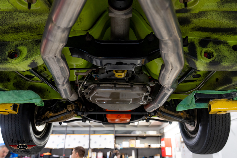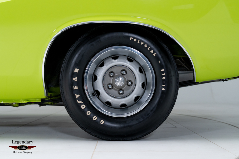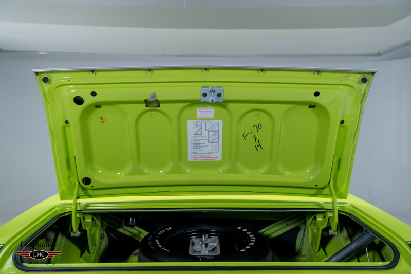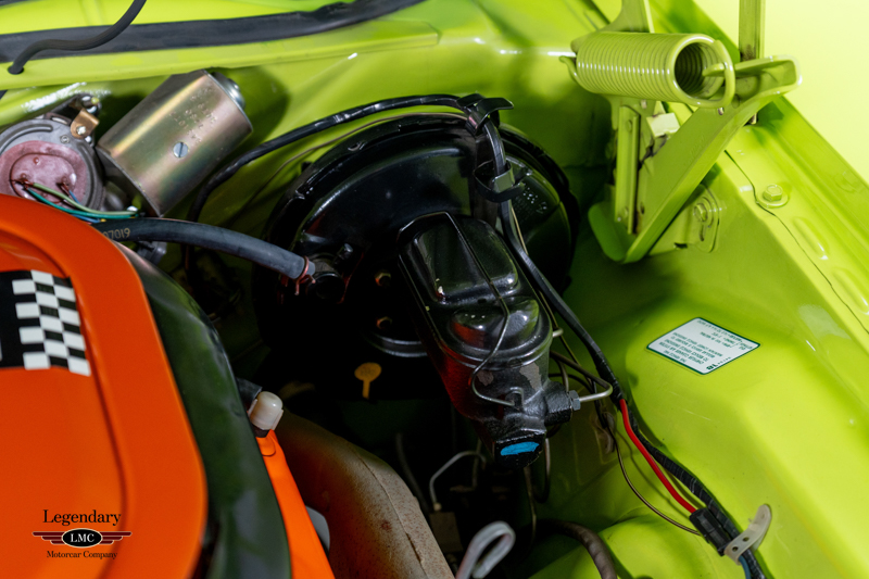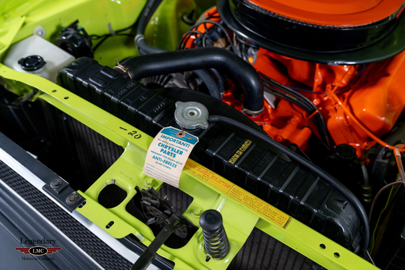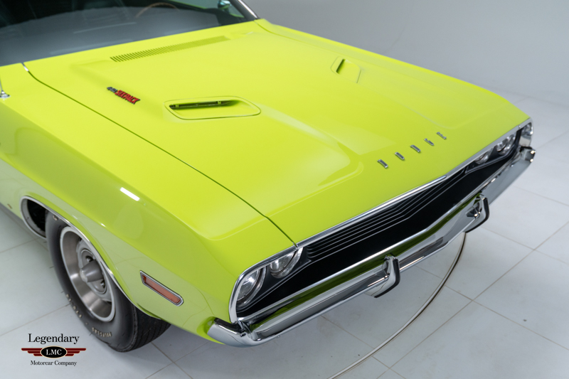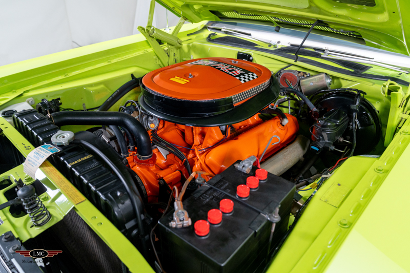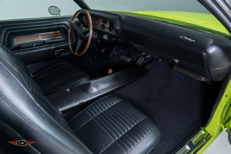 Introduced in 1970, the Dodge Challenger R/T quickly became one of the most formidable performance offerings of the muscle-car era, especially when equipped with the legendary 440 Six Pack engine. Combining bold High Impact colors, aggressive styling, and Chrysler’s top big-block performance technology, the Six Pack R/T delivered exceptional straight-line performance and a commanding road presence. This example captures that legacy perfectly, having been rotisserie restored to factory-correct standards in its original Sublime Green with Black vinyl roof and Black Bumblebee stripe.