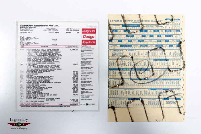 Benefiting from a previous complete rotisserie restoration, this Challenger has been refinished, detailed, and assembled to factory-correct standards, replicating the colors, finishes, and equipment shown on the broadcast sheet. The result is a highly authentic and exceptionally presented 1970 Challenger R/T 440 Six Pack—an iconic High Impact–color Mopar restored to its original glory.