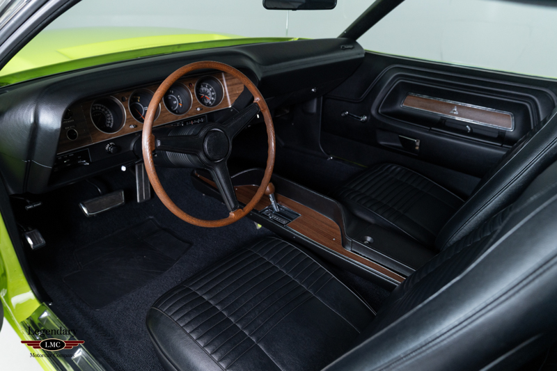 The heart of the car—the 440 Six Pack V8 with triple two-barrel carburetors—remains one of Chrysler’s most iconic performance engines, delivering broad torque and unmistakable throttle response. Paired with the robust Torqueflite automatic, this Challenger R/T offered one of the quickest and most usable high-performance packages of the muscle-car era.