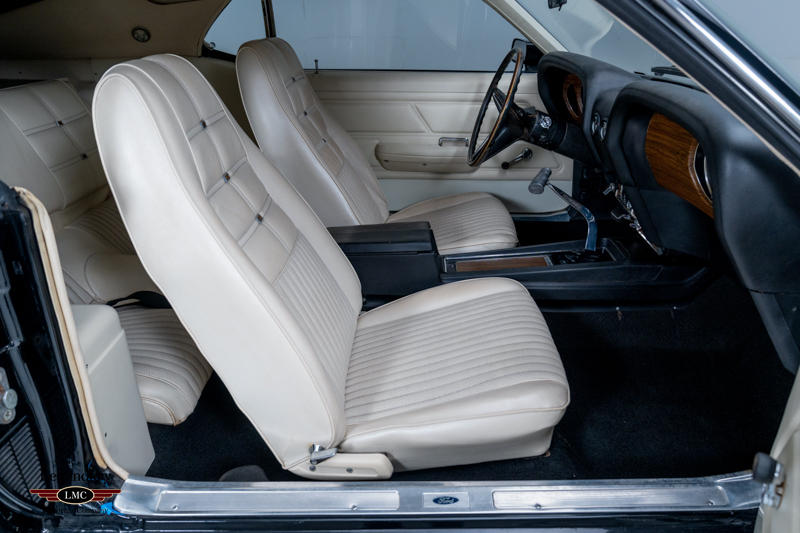 Offered here is a highly desirable 1970 example sold new at Harold Turner Ford in Troy, Michigan, and originally ordered in striking Grabber Blue with a White Clarion interior—one of the most eye-catching and sought-after color combinations available on the model. During the 1980s the car received a repaint in black, which remains the only notable cosmetic change from its factory configuration.
