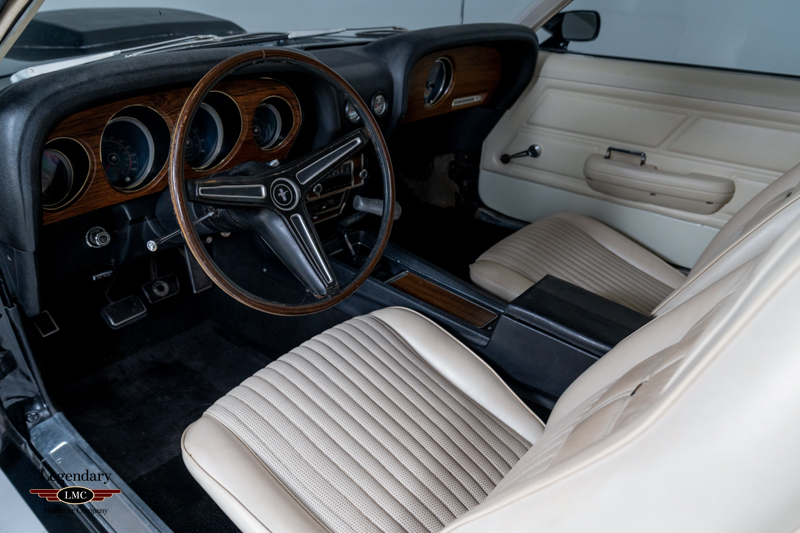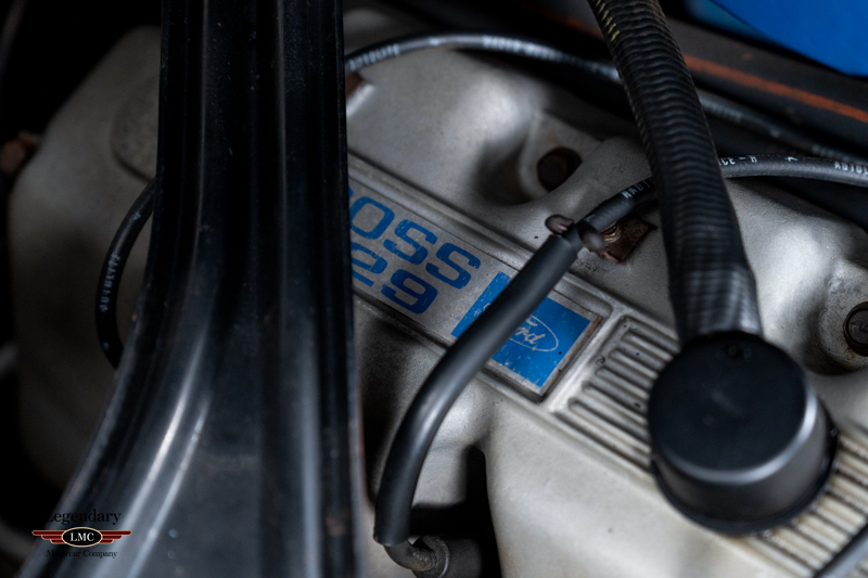 Importantly, the car retains its numbers-matching drivetrain, including the legendary Boss 429 V8 engine, factory manual transmission, and rear axle. The car also retains its original White Clarion interior, which remains exceptionally well preserved. Beyond the single repaint, the car has remained in excellent original condition, preserving the authenticity and character that collectors prize in these rare homologation Mustangs.