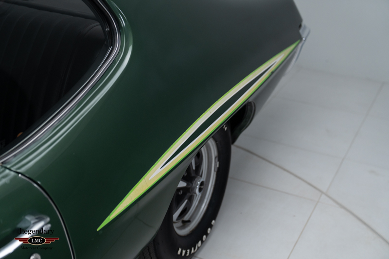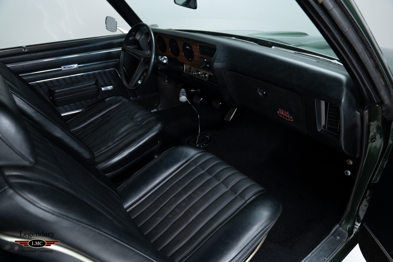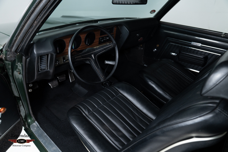 Finished in its original factory-applied Code MM Pepper Green paint, this Judge still wears the lacquer sprayed at Pontiac’s assembly plant in 1970. The fit, finish, and factory details—from the signature striping to the Judge callouts—remain exactly as built, offering an extremely rare opportunity to study a genuine, unrestored example. The Code 58 Black Bucket Seat interior is equally original, with factory materials, textures, stitch patterns, and trim untouched since new. Original finishes on the dash, door panels, seat coverings, carpet, and console further validate the car’s authenticity and exceptional preservation.