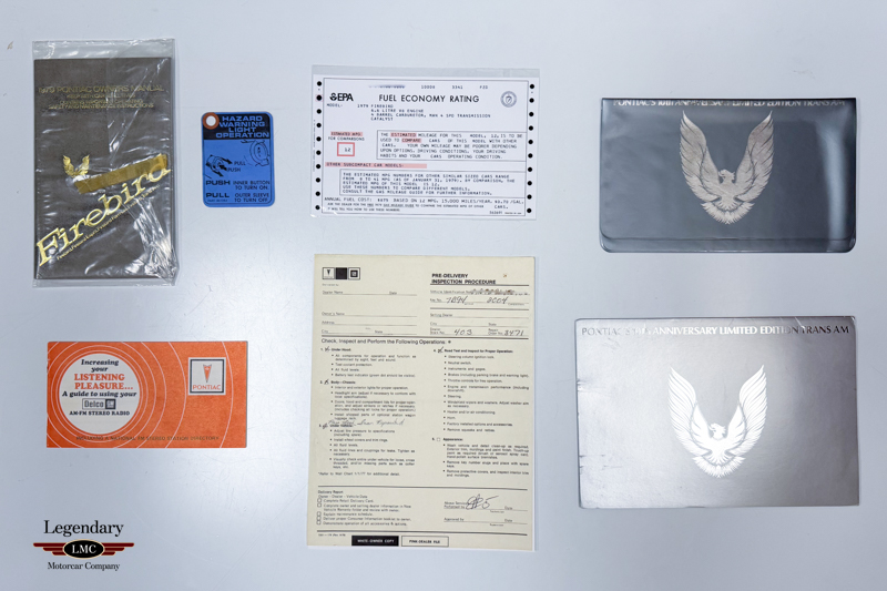 Originally sold new at Arlikas Pontiac in Aurora, Illinois, this 10th Anniversary Trans Am represents one of the finest preserved examples known. Notably, a similar 10th Anniversary Edition was selected as the official pace car of the 1979 Daytona 500, underscoring the prestige and performance pedigree of this model.