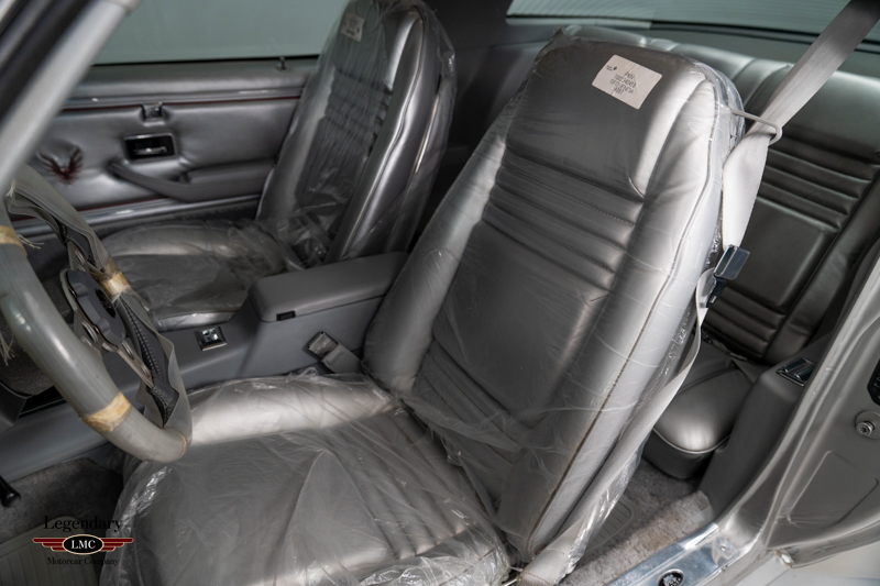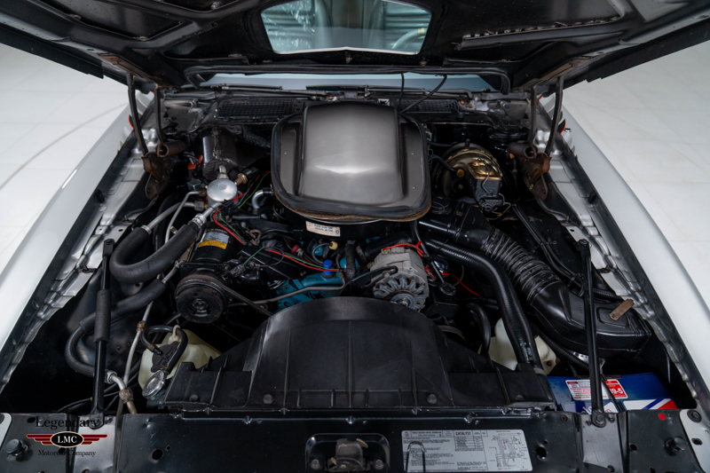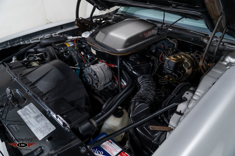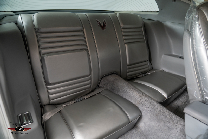 Factory-equipped with the desirable WS6 performance handling package, this Trans Am features the 400 CI V8 engine paired with a 4-barrel carburetor and 4-speed manual transmission, delivering the last of Pontiac’s true big-block performance. Additional features include T-tops with bag covers, tilt steering column, air conditioning, Delco AM/FM stereo with 8-track player, power windows and locks, silver seat belts, and a center console with medium gray trim that complements the silver leather upholstery.
