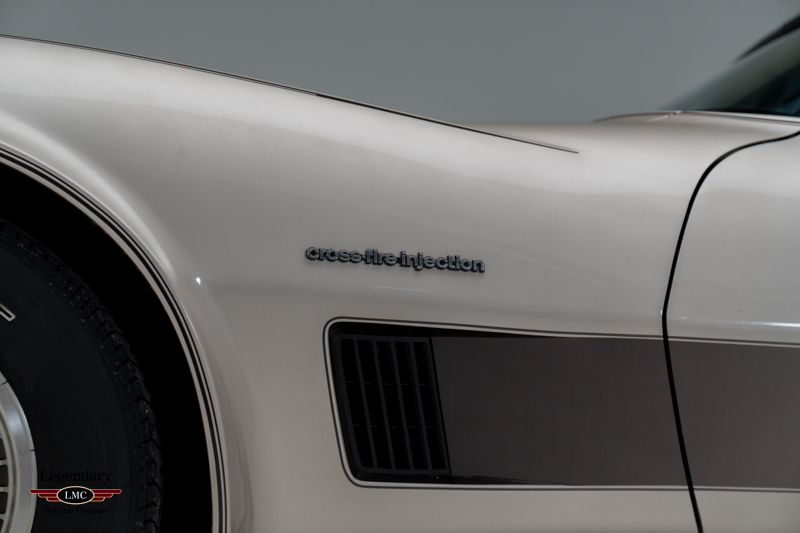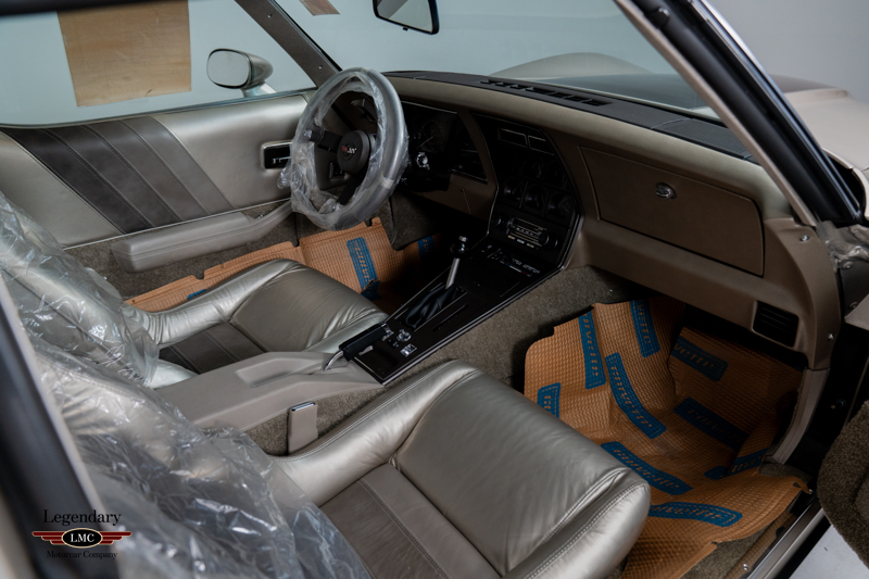 As the ultimate send-off to the C3 era, the Collector Edition introduced several firsts, most notably the lift-up frameless rear glass hatch, exclusive turbine-style aluminum wheels, and a uniquely patterned Silver Beige leather interior created specifically for this model. Powered by the Cross-Fire Injection 350ci V8 paired with a 4-speed automatic transmission, the car represented the most advanced engineering and refinement available on a Corvette in 1982.