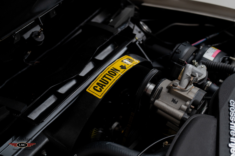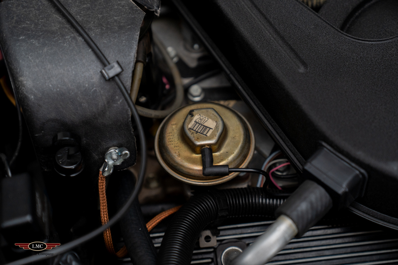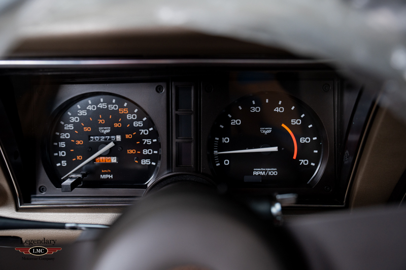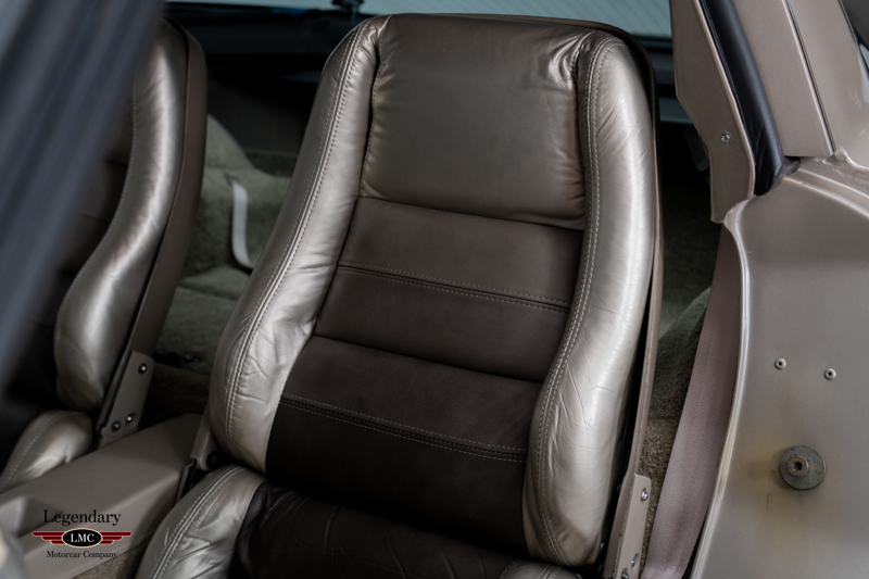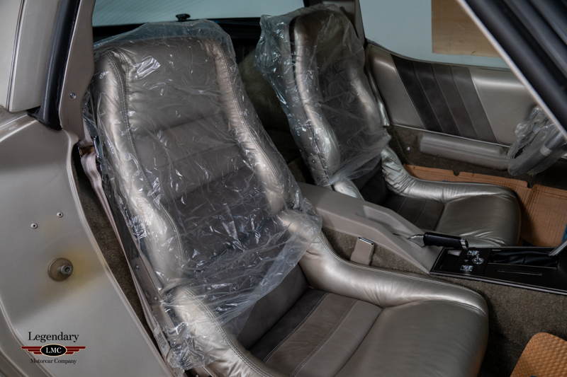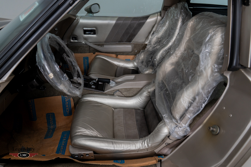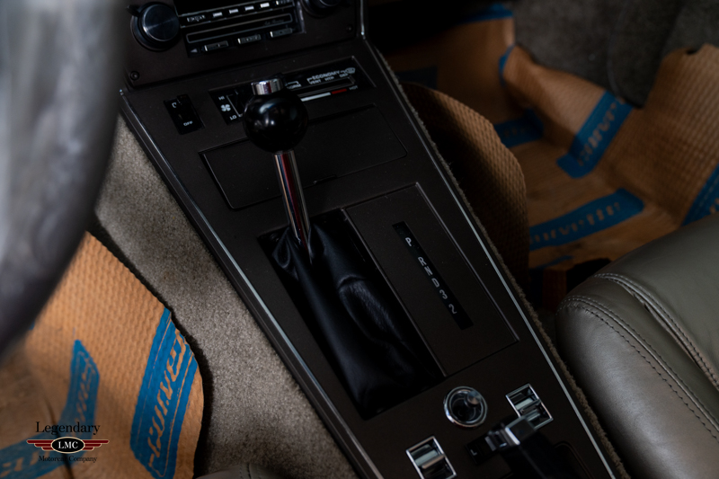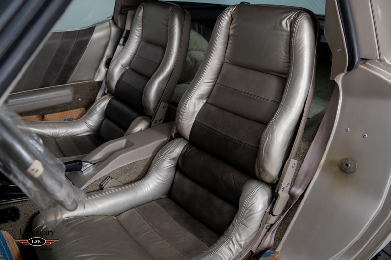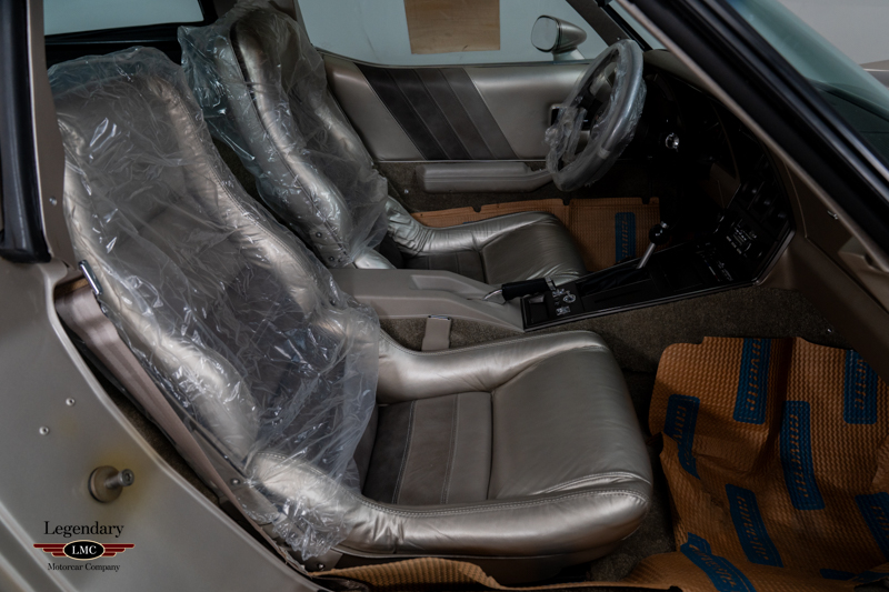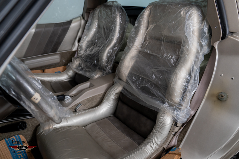 The interior remains in untouched, showroom-fresh condition, with original leather surfaces, carpeting, and trim that have been preserved for more than four decades. The exterior is equally superb, retaining its original paint, glass, decals, and all factory-applied finishes. Every detail reinforces the car’s extraordinary state of preservation and its status as a benchmark example.