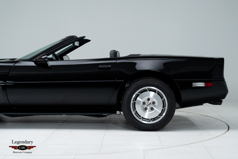 This 1986 Chevrolet Corvette Convertible represents a true time-capsule example of Chevrolet’s fourth-generation sports car, preserved in virtually new condition since delivery with only 21 miles on the odometer. This Corvette remained on display in a dealership showroom for decades. Finished in classic Black over a Graphite leather interior, this Corvette is powered by the legendary 5.7-liter L98 V8 paired with a desirable 4+3 manual transmission. Power is delivered to the rear wheels through a limited-slip differential, offering period-correct performance and unmistakable small-block character. Factory 16-inch turbine-style alloy wheels remain fitted with their original Goodyear Eagle VR50 tires, underscoring the car’s remarkable originality.