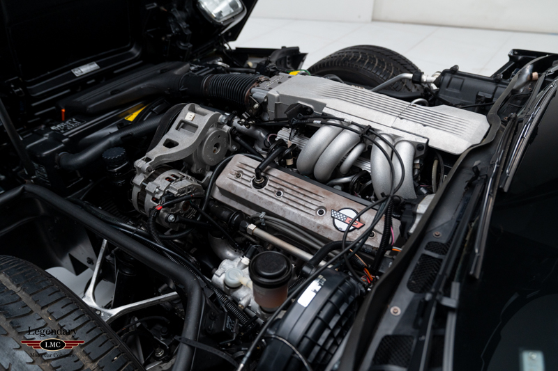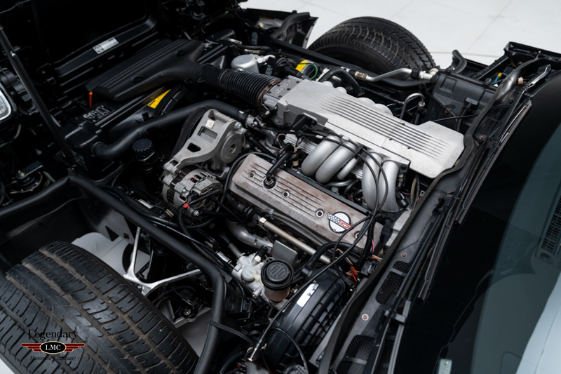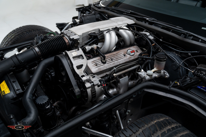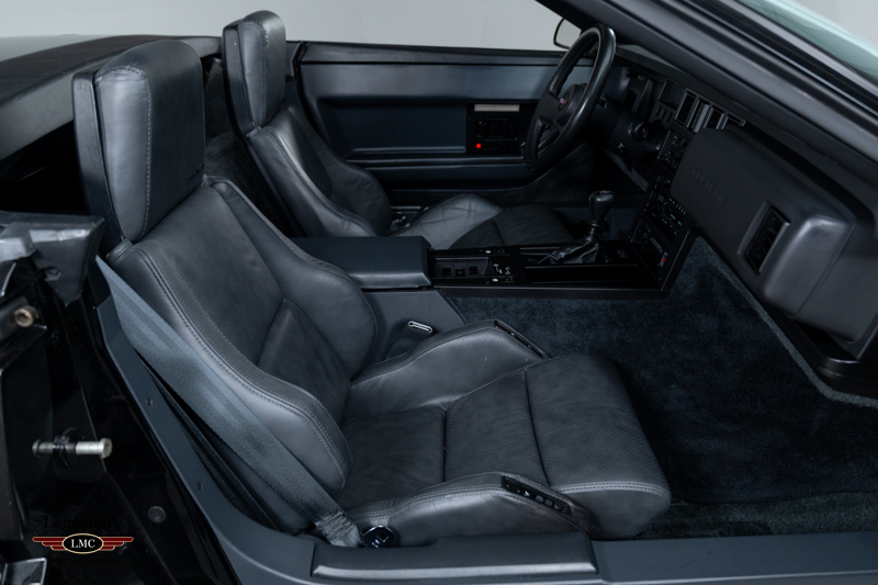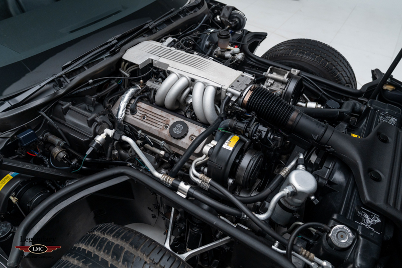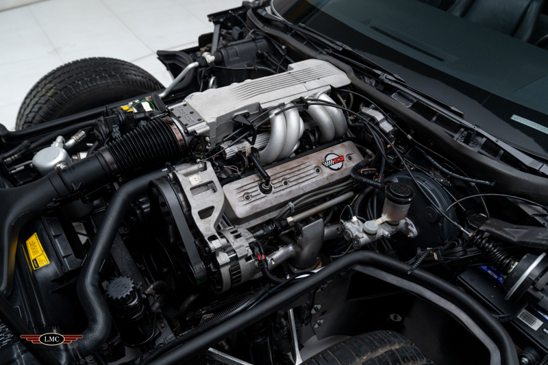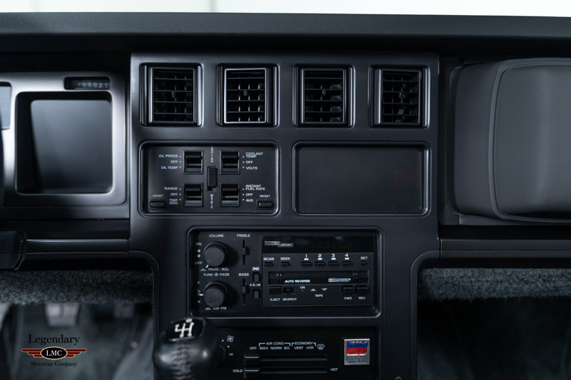 Inside, the cabin is trimmed in Graphite leather and features power-adjustable sport bucket seats. Amenities include air conditioning, cruise control, power windows, an onboard computer, and the original Delco-Bose sound system. The leather-wrapped two-spoke steering wheel frames the signature digital instrument cluster, complete with speedometer, tachometer, fuel level, and numeric readouts for oil pressure, oil temperature, coolant temperature, and fuel economy.