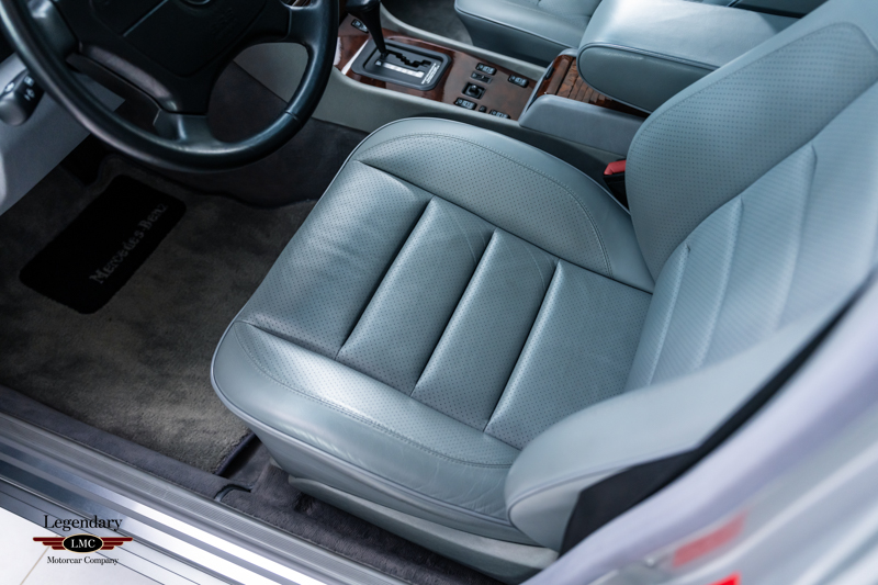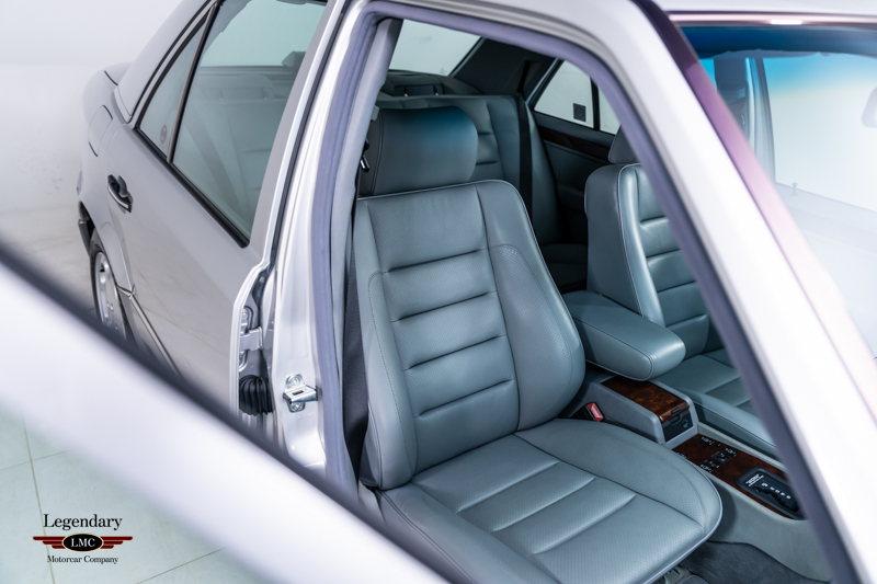 Externally, the 500E is distinguished by a subtly widened front and rear track, flared wheel arches, and a lower stance. At its heart lies the naturally aspirated M119 V-8, delivering seamless power and exceptional durability, paired with a four-speed automatic transmission. Equipment includes deeply bolstered Recaro seats, a self-leveling hydropneumatic rear suspension for high-speed stability, and Mercedes’ distinctive single-arm articulating windscreen wiper.