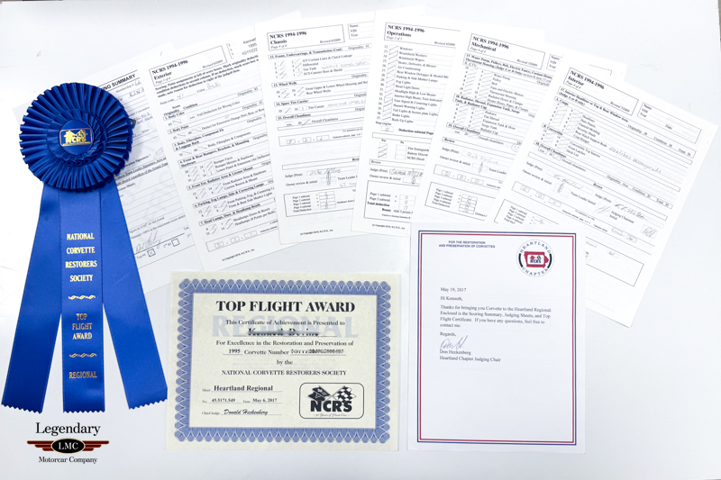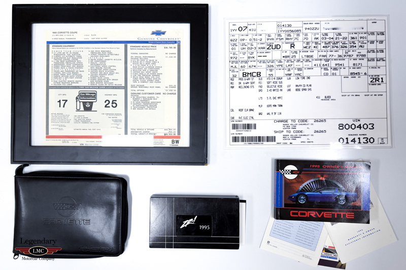 Adding significantly to its desirability, this ZR-1 is accompanied by an extensive collection of original documentation and accessories, including the original window sticker, build sheet, owner’s manuals, NCRS Top Flight Award documentation, factory cassette tape, two original keys, and additional supporting materials. Such completeness is rarely found, particularly in a ZR-1 with mileage this low.