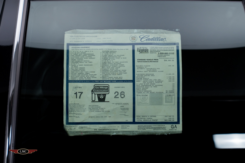 Every detail underscores its authenticity and originality. The car is accompanied by its original owner’s manuals and factory cassette tape, while the original window sticker remains affixed to the glass, providing a snapshot of its delivery condition. Examples this pure and unaltered rarely surface—especially from the final year of production. It’s a truly exceptional 1996 Cadillac Fleetwood Brougham and an irreplaceable opportunity for collectors seeking one of the most pristine, last-of-the-line luxury sedans ever produced.