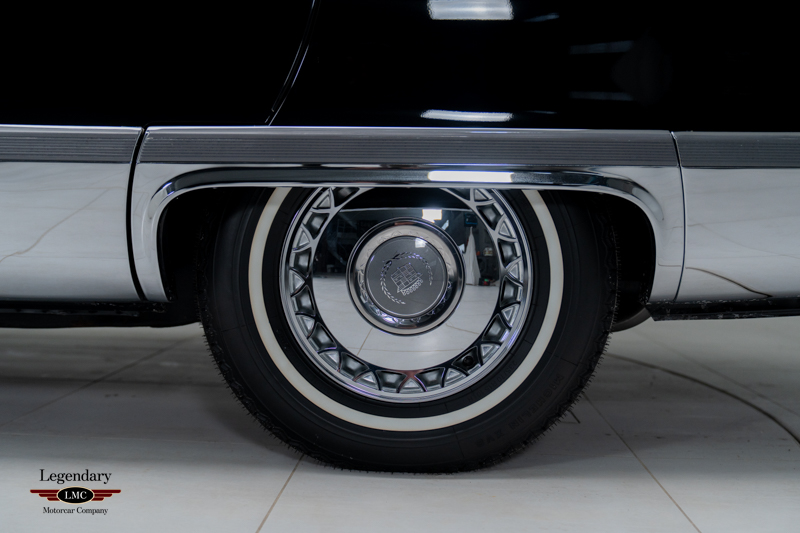 Finished in stunning Black Onyx with a matching black leather interior, the car retains its original paint, original vinyl top and original interior, all presenting as virtually untouched. Power comes from the coveted LT1 350 CI V-8 engine, delivering smooth, confident performance paired with the spacious comfort and sophistication that defined Cadillac’s flagship sedan.