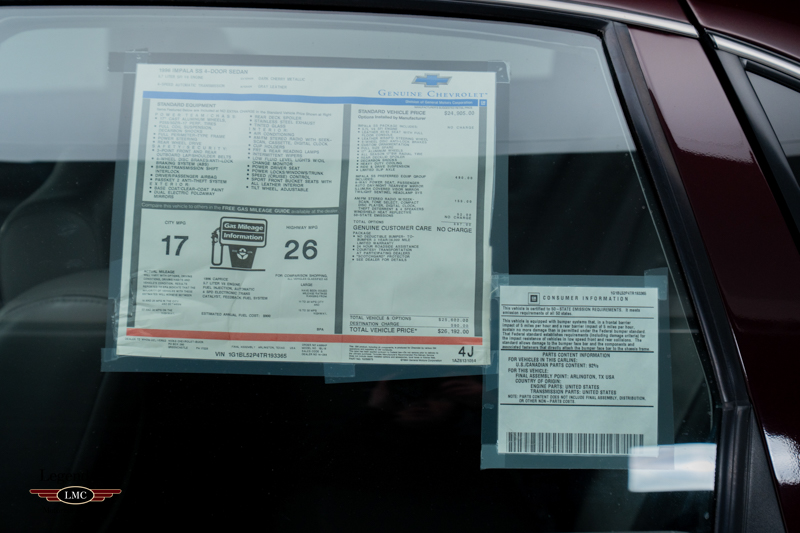 A truly extraordinary preservation-grade Impala SS, representing one of the closest opportunities to experiencing a 1996 Impala SS exactly as it left the showroom.