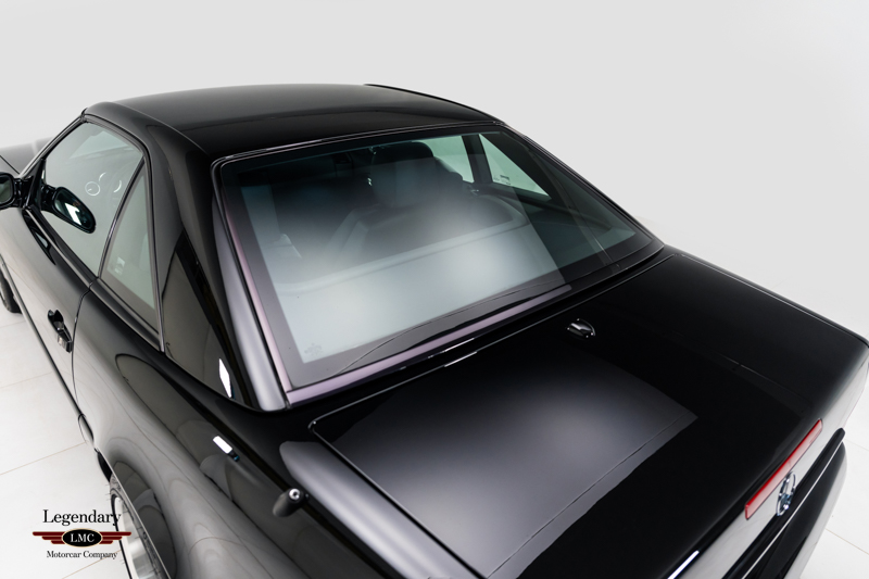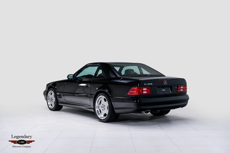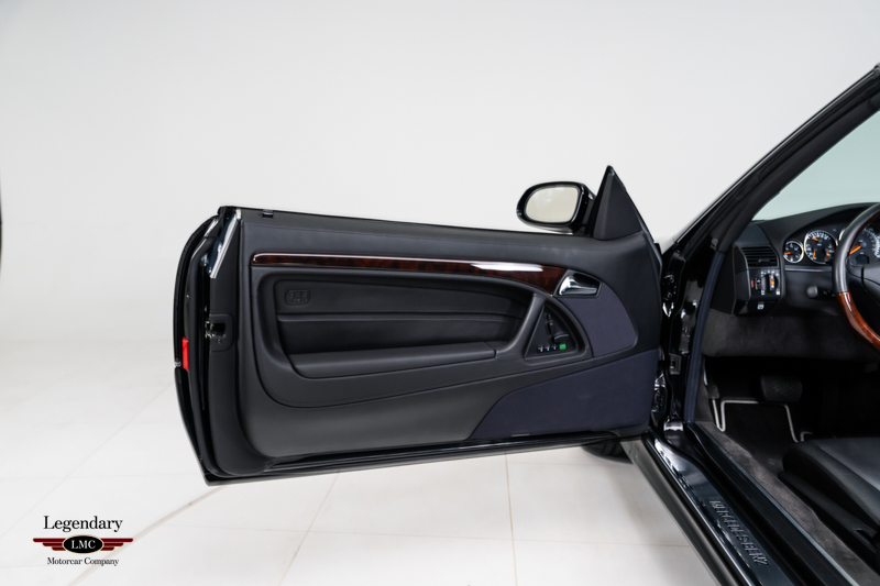 This 2001 Mercedes-Benz SL600 is a spectacular, time capsule example, displaying approximately 1,100 miles at the time of cataloguing. Notably, it is reported to have been retained by Mercedes-Benz for approximately 20 years prior to its first registration – an unusual custodial history that explains its exceptional preservation. Finished in Black (040) over a matching black Nappa leather interior, the car is equipped with a factory-removable hardtop and a power soft top in black. The consignor notes replacement of the soft-top hydraulic cylinders and the application of clear paint-protection film. Additional features include xenon headlights, fog lights, and 18" five-spoke AMG wheels fitted with Michelin Pilot Sport 4S tires.