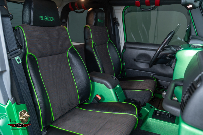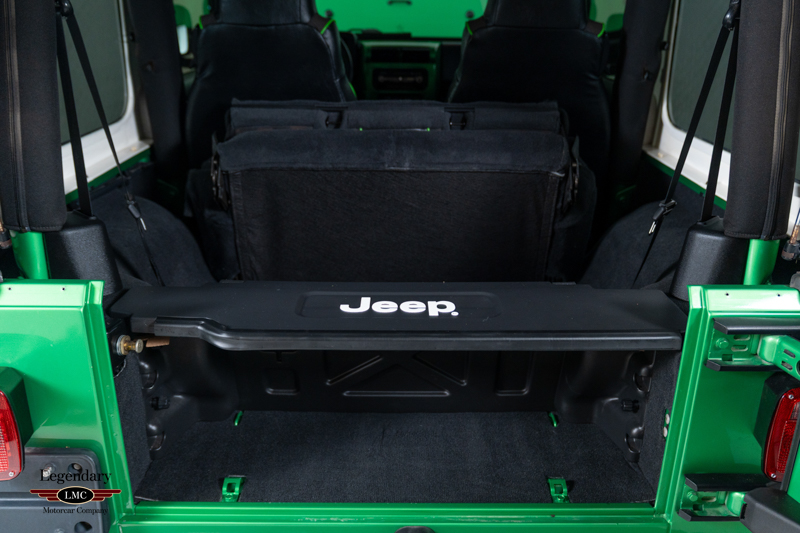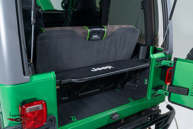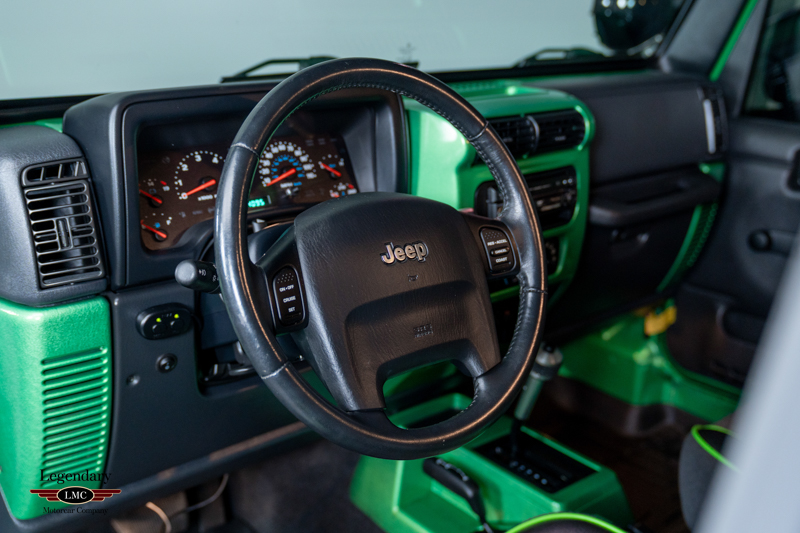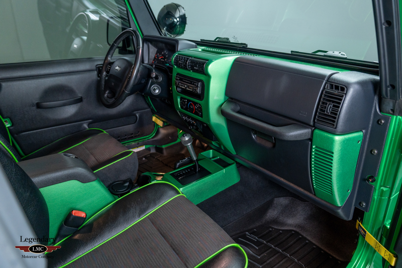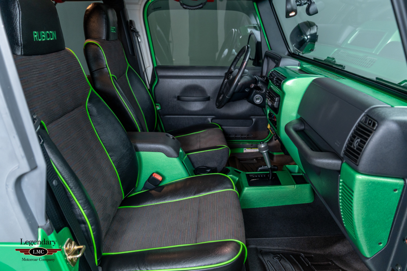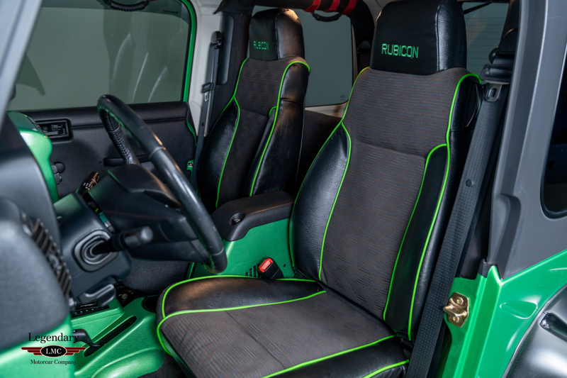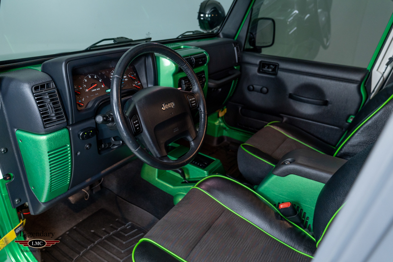 Underneath, the chassis and suspension components remain impressively clean, further verifying this Jeep’s lightly driven and well-preserved history. With most TJ Rubicons seeing extensive use or heavy modification, finding a 14,000-mile, automatic, Electric Lime Green example—especially one of just 229 built—is exceedingly rare. This example strikes an ideal balance between originality and tasteful enhancement, making it equally appealing as a collector piece or a capable enthusiast’s vehicle.