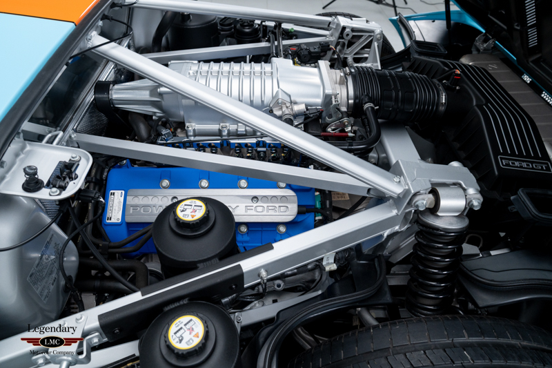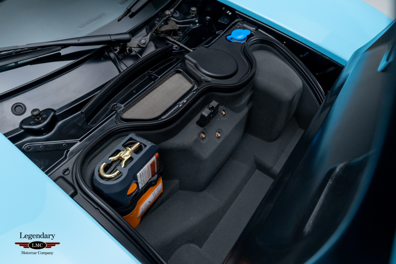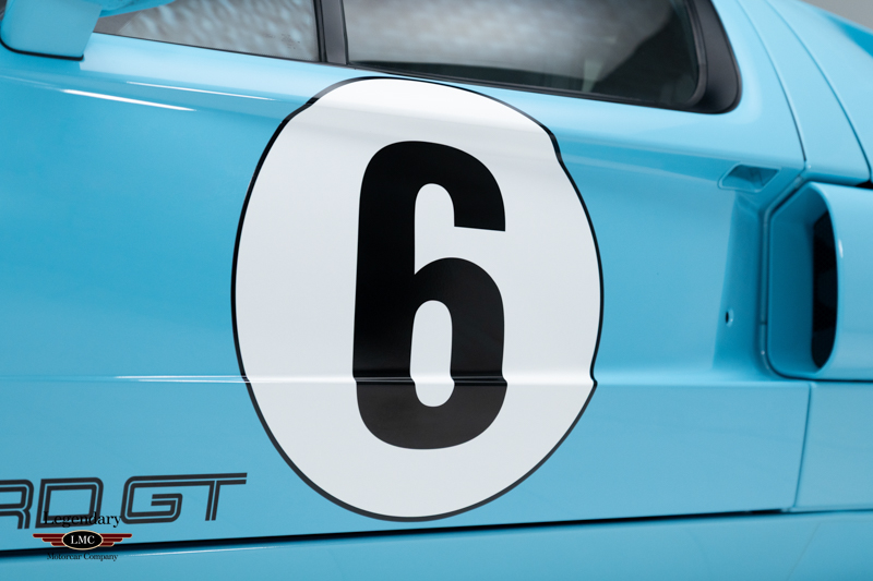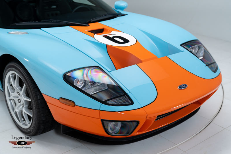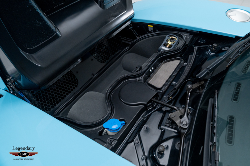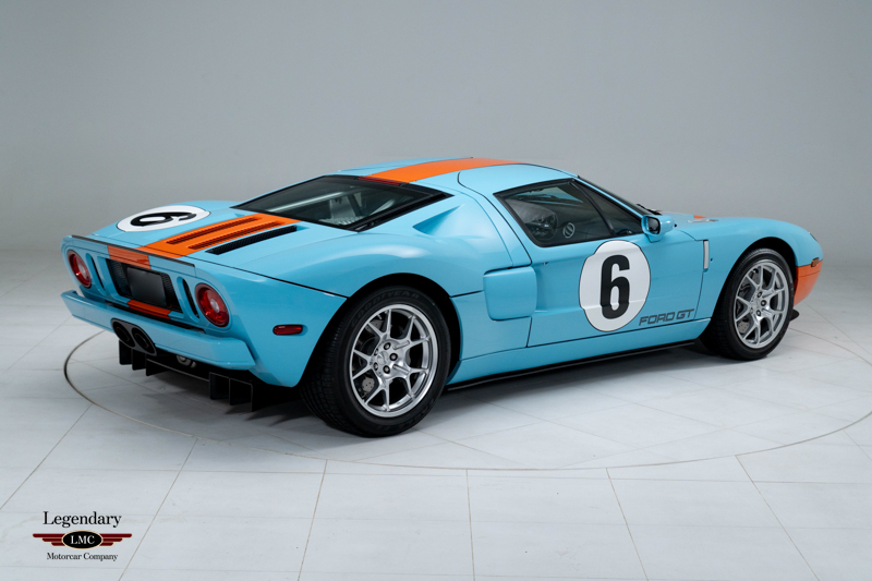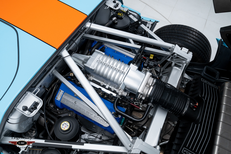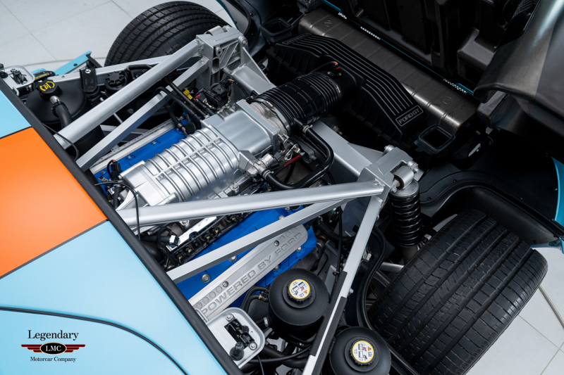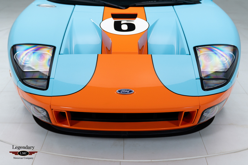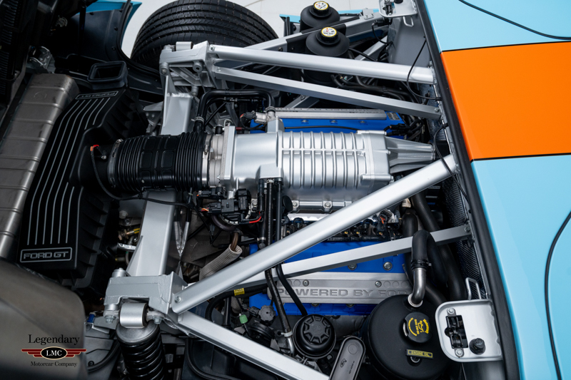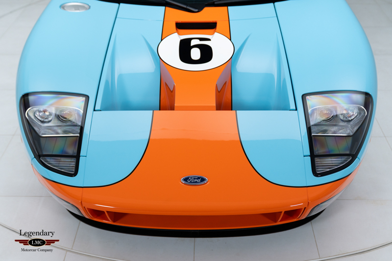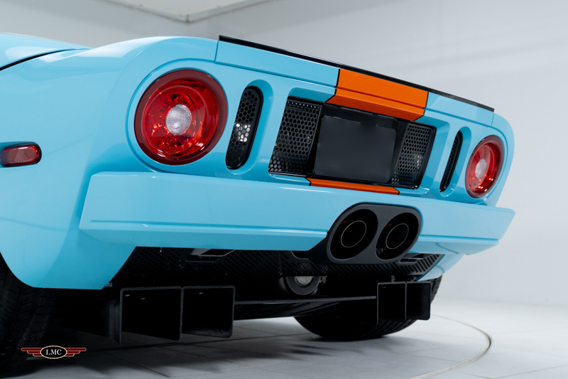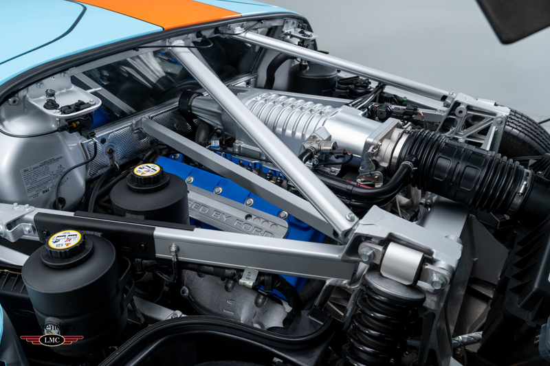 Finished in the iconic Heritage livery inspired by the Gulf Racing GT40s, this example captures the essence of Ford’s motorsport glory. The instantly recognizable color scheme pays direct tribute to the machines that conquered Le Mans, making this variant one of the most visually and historically significant iterations of the Ford GT.