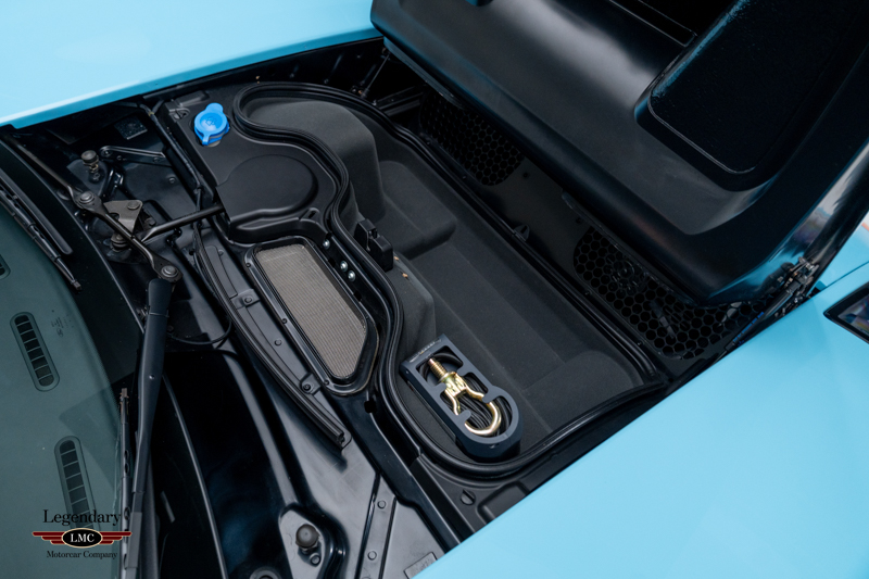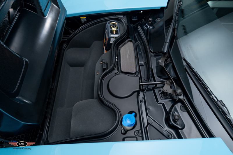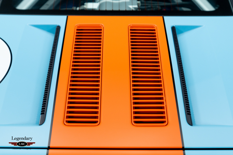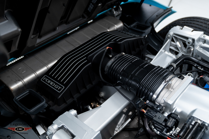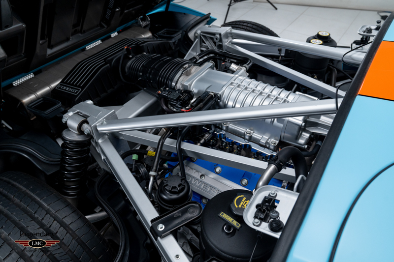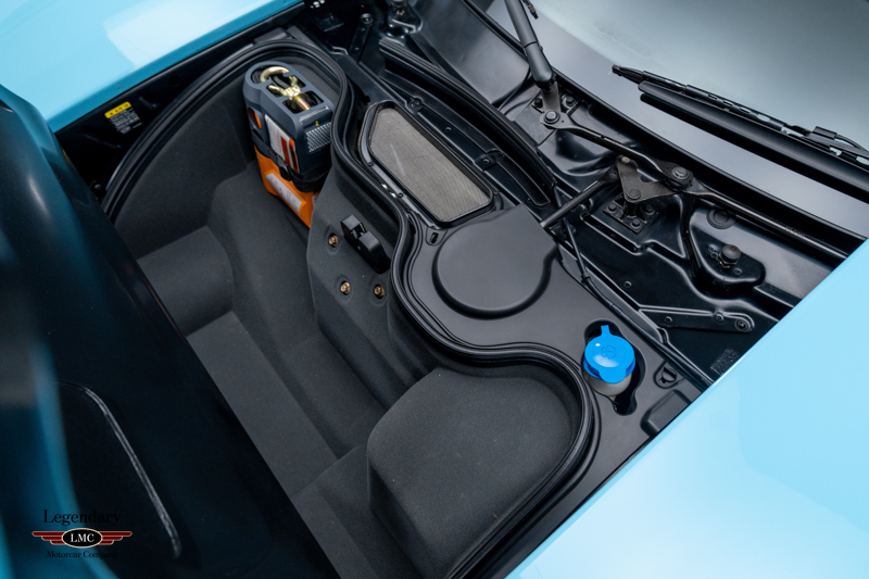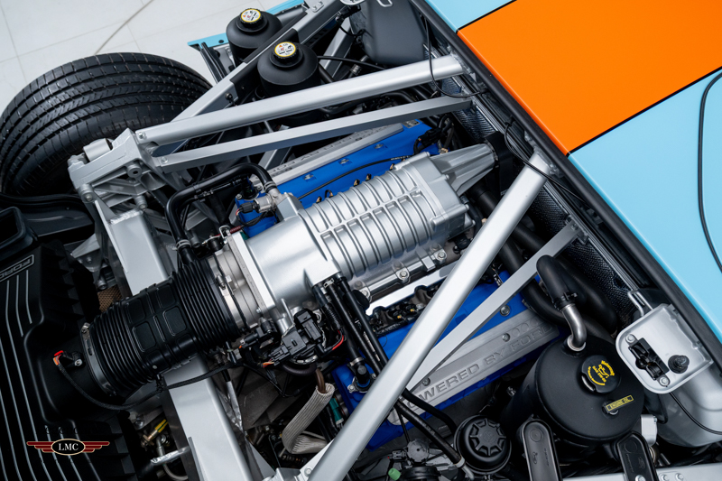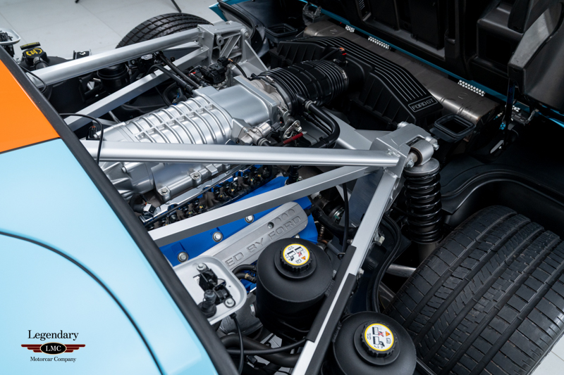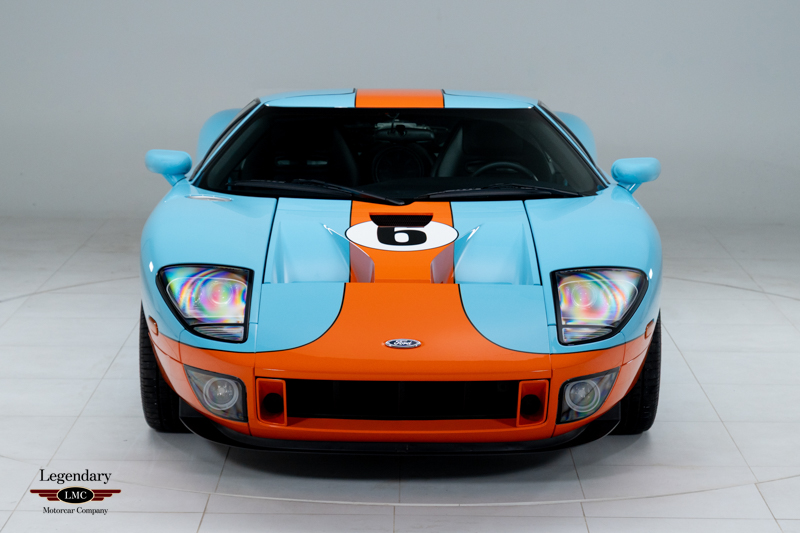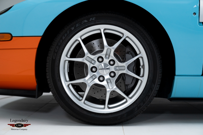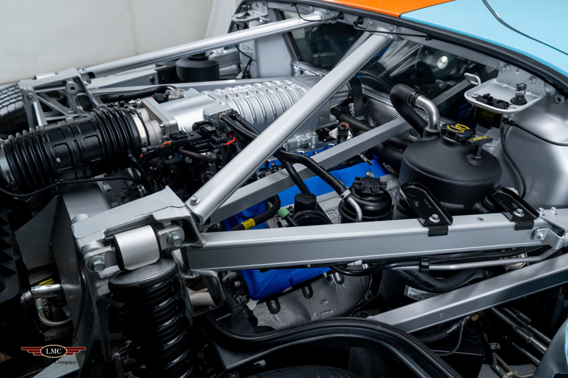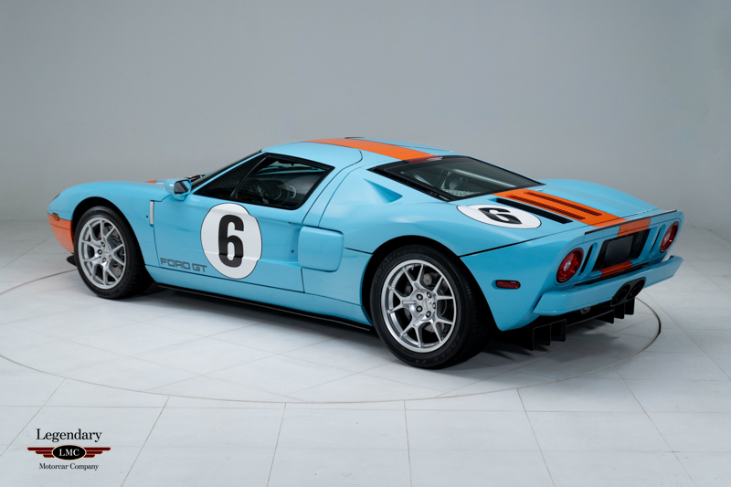 Finished in the iconic Heritage livery inspired by the Gulf Racing GT40s, this example captures the essence of Ford’s motorsport glory. The instantly recognizable color scheme pays direct tribute to the machines that conquered Le Mans, making this variant one of the most visually and historically significant iterations of the Ford GT.