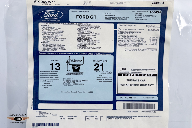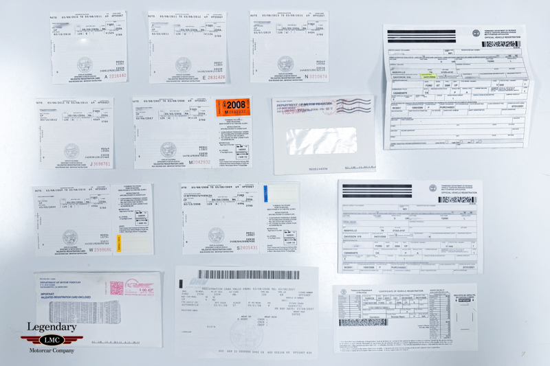 This particular example was delivered new to Mossy Ford in San Diego, California, and remains accompanied by a comprehensive suite of original documentation. Included are the original window sticker, owner’s manuals, registration documents, and related factory materials, further reinforcing its provenance and collector-grade status.