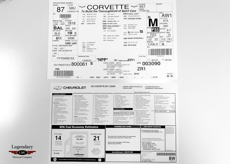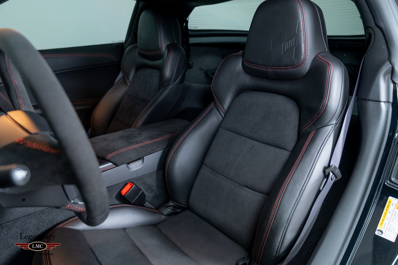To celebrate its 100th anniversary in 2012, Chevrolet introduced the Corvette Centennial Edition, known internally as Code ZLC. Available on any Corvette, the Centennial Edition was offered only in Carbon Flash Metallic paint with Satin Black graphics, Satin Black wheels and red brake calipers. Of the Centennial Edition Corvettes produced in 2012, the most special for collectors by far is the ZR1 with only 206 ever produced!