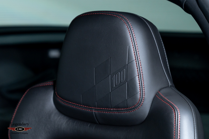 Along with the paint scheme, the wheels are special, lightweight, cast spun alloys with a thin red outline around the perimeter, distancing them from any other Corvette wheel. A unique logo featuring Louis Chevrolet complete with goggles and a bold “100” behind him appears on the B-pillar hoop and on the center caps of the wheels. Another detail is the number 100 emblazoned on the crossed checkered-flag Corvette logos. The Centennial interiors are as nicely detailed as the exterior, upholstered in ebony leather with red stitching and microfiber suede inserts on the seats, steering wheel and shift knob.