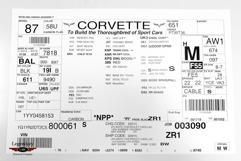 Accompanying this special Corvette, is the window sticker, owners manuals, two keys and more! The ZR1 has long been heralded as one of the ultimate driver’s cars, and this one is no exception.
