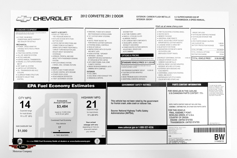 LMC is very proud to offer for sale this 2012 Chevrolet Corvette ZR1 Centennial Edition