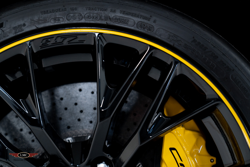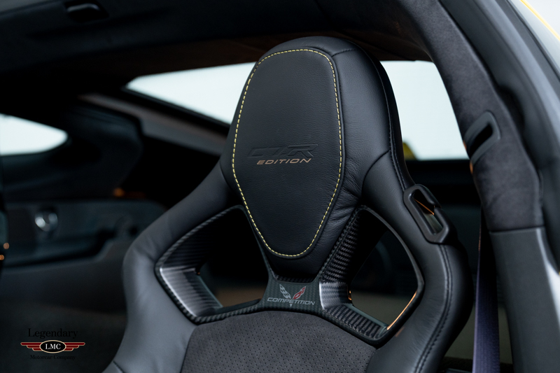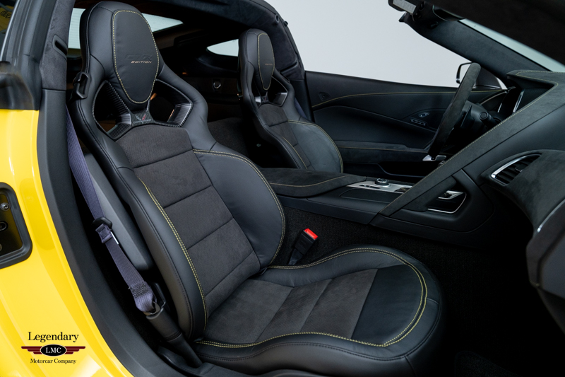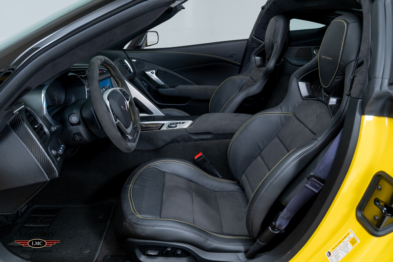 Finished in Corvette Racing Yellow, the C7.R Edition is immediately distinguished by its aggressive, motorsport-inspired presence. Carbon fiber ground effects, hood graphics, black badging, and signature aerodynamic details echo the factory race cars that conquered the world’s most demanding circuits. Inside, the cockpit features competition-inspired appointments including carbon fiber trim, suede microfiber surfaces, and C7.R-specific accents that reinforce its track-bred character while maintaining road-car refinement.