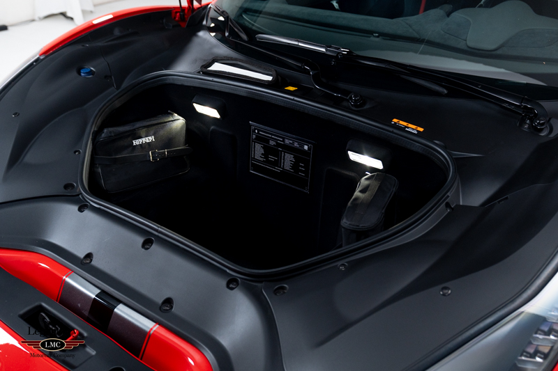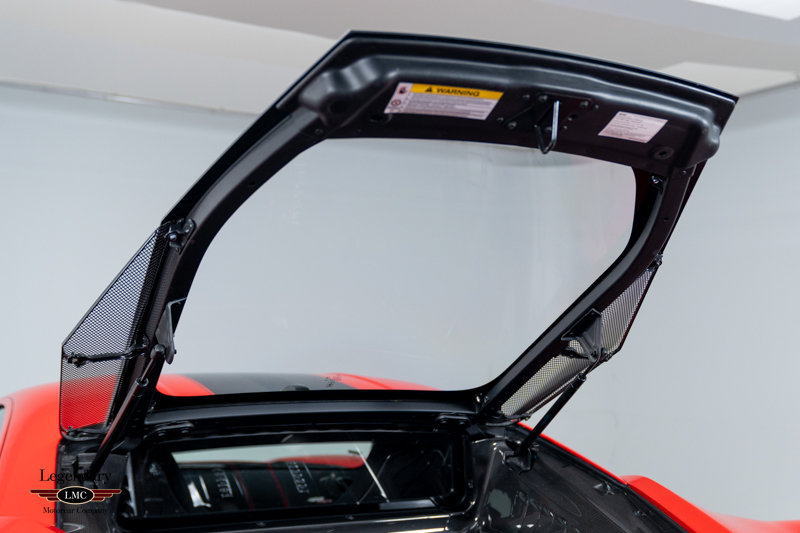Finished in Rosso Corsa this example has traveled just 4.026 miles from new and remains in exceptional condition throughout. As per the option list, this special example was highly specified from the factory, with options including: afs system, red brake calipers, carbon fibre front flaps, carbon fibre side air splitter, engine covers in carbon fibre, front airvents in carbon fibre, horse stitched on headrest, black ceramic exhaust pipes, coloured mats with logo, radionavi system + bluetooth, front and rear parking cameras, two-tone stripe, other options,