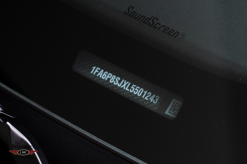 This example is equipped with several desirable options, including the Recaro leather-trimmed sport seats, Technology Package featuring B&O 12-speaker premium audio, Blind Spot Information System with Cross-Traffic Alert, and Voice-Activated Navigation. It also features High Gloss Ebony over-the-top vinyl stripes and matching side stripes, adding to its aggressive styling.