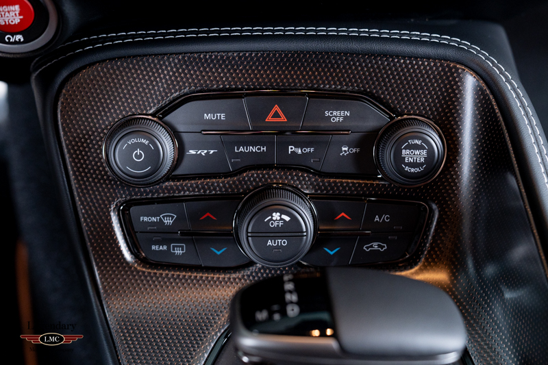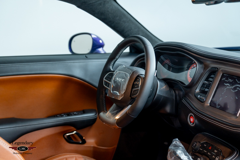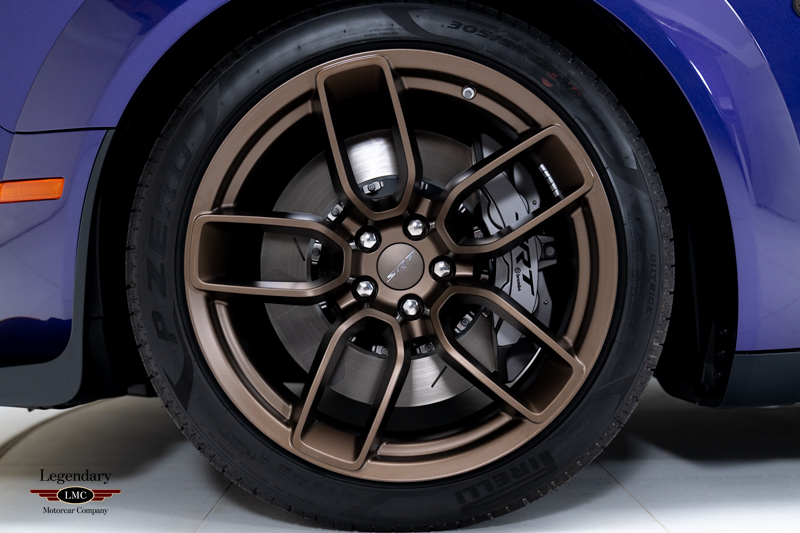 Under the hood, the supercharged 6.2-liter HEMI® V8 delivers 807 horsepower, paired with the robust TorqueFlite® 8-speed automatic transmission. The Widebody package adds aggressive fender flares, 20x11-inch wheels, and enhanced handling dynamics with Brembo six-piston brakes, competition suspension, and SRT drive modes with Launch Control and Line Lock.
