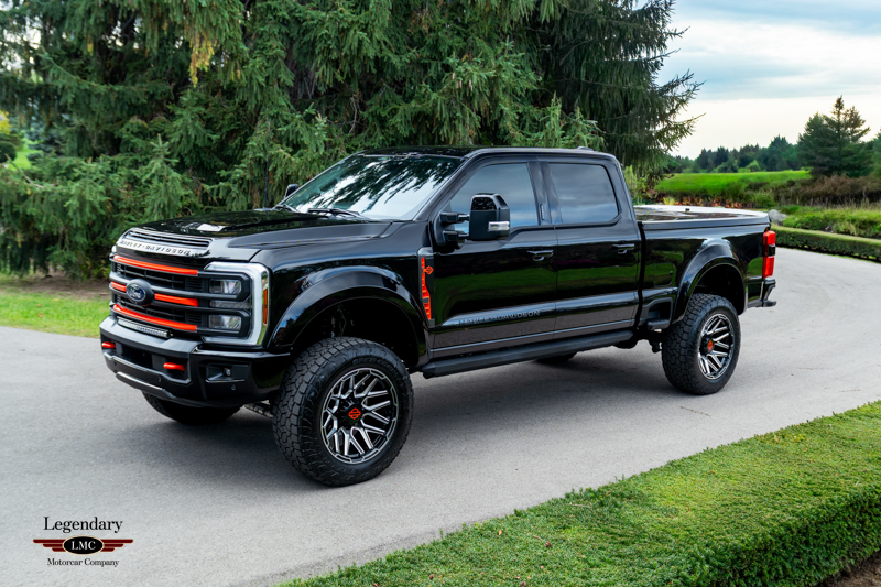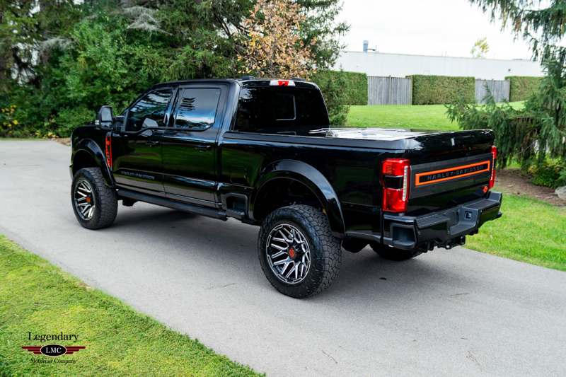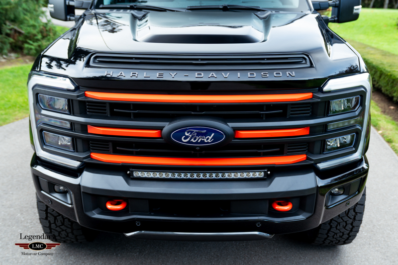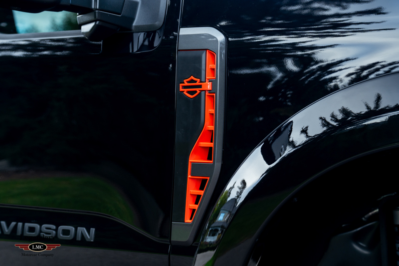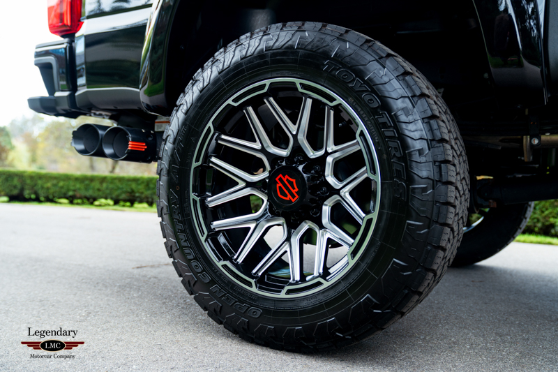 Powered by Ford’s proven 6.7L Power Stroke diesel V8 paired with a 10-speed automatic transmission, the Harley-Davidson F-350 delivers tremendous capability underlined by a commanding visual presence. Each Tuscany-built truck receives an exclusive BDS suspension system with custom-tuned Fox performance shocks, giving it both elevated stance and enhanced ride quality. A full array of Harley-Davidson–specific exterior upgrades completes the look, including a grille replacement with painted accent tow hooks, air-induction hood with textured hood vent, Harley-Davidson front bumper with accented skid plate, and an integrated LED light bar. Additional features such as body-color fender flares, dual billet aluminum exhaust tips with orange accents, and striking 22-inch Harley-Davidson black and milled wheels further distinguish this Edition.