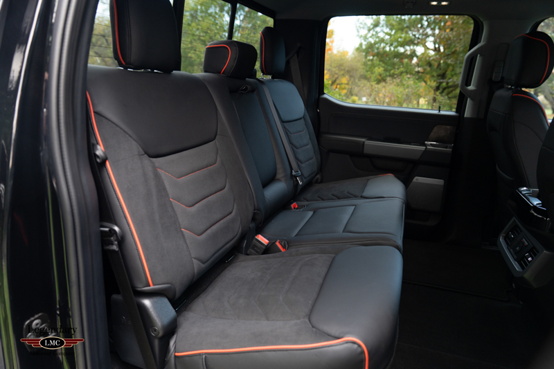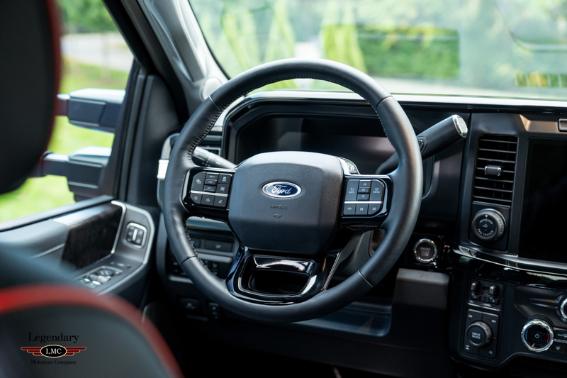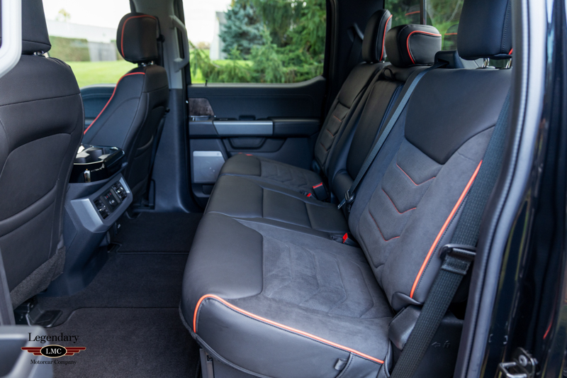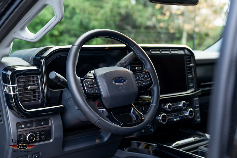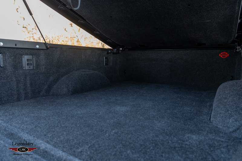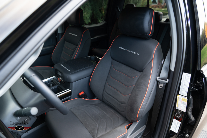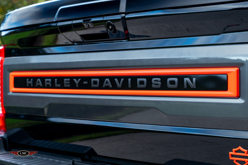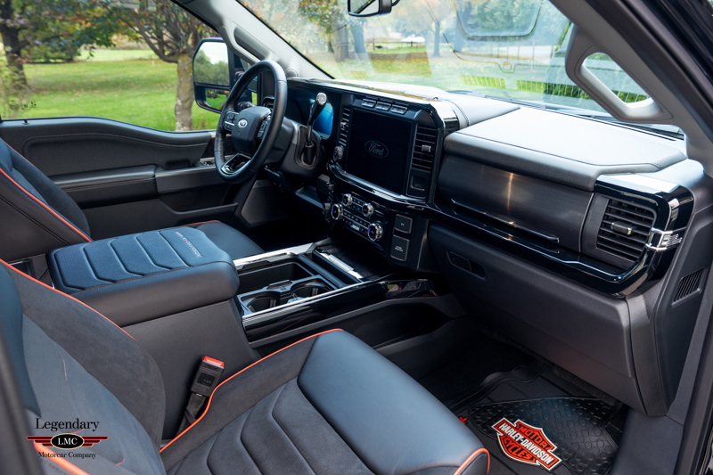 Inside, the cabin receives a full transformation with custom Harley-Davidson seat covers, a Piano Black accented console, and illuminated power running boards with rock-guard trim and entry lighting, blending utility with premium detail. Every element reflects the partnership between Ford and the legendary motorcycle marque Harley-Davidson—delivering a truck that is both highly capable and instantly recognizable.
